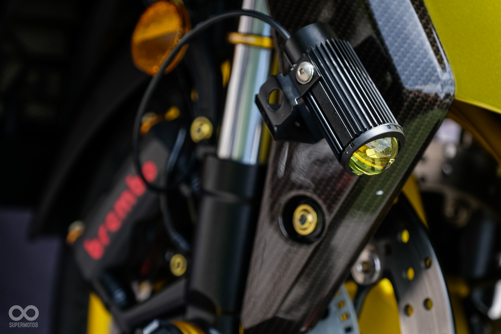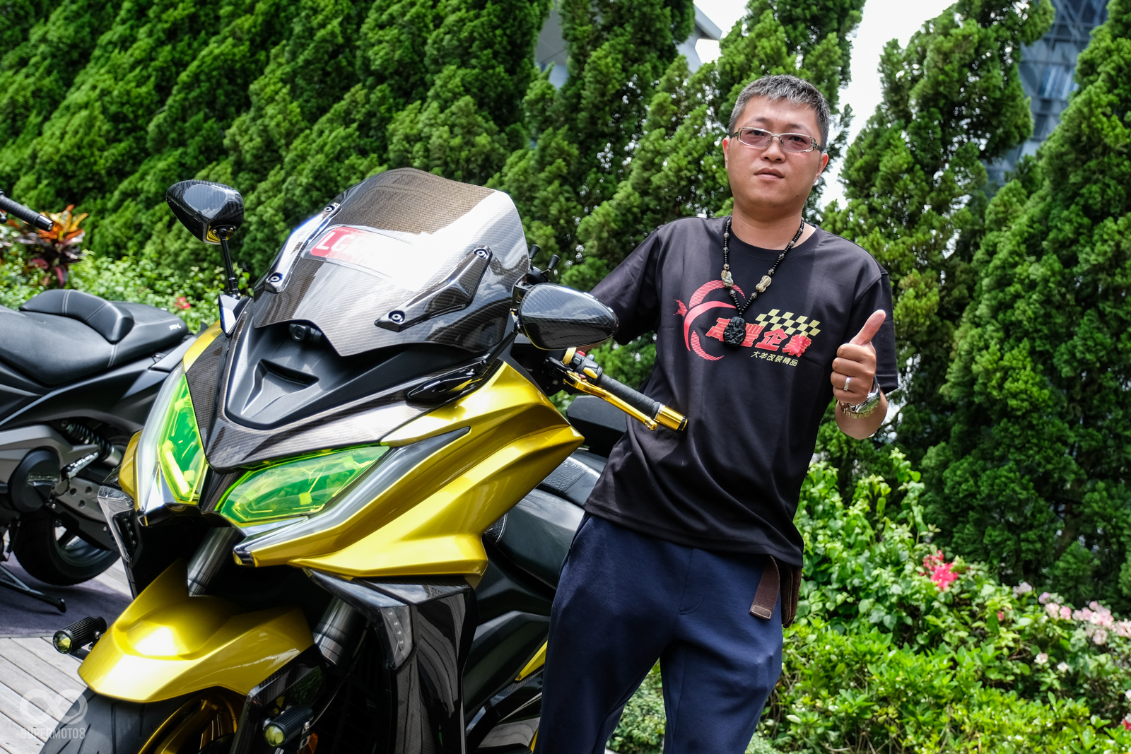 對於部分讀者來說,對於KYMCO AK550已相當暸解,今天透過這場活動,筆者也稍微訪談了車主的騎乘、改裝心得。首先這輛黃色塗裝的AK550相當高調,除了全車的芥末黃烤漆外,捨棄原廠的Brembo卡鉗改採效能更好的版本安裝,額外加裝的霧燈也大幅提升行車安全性。