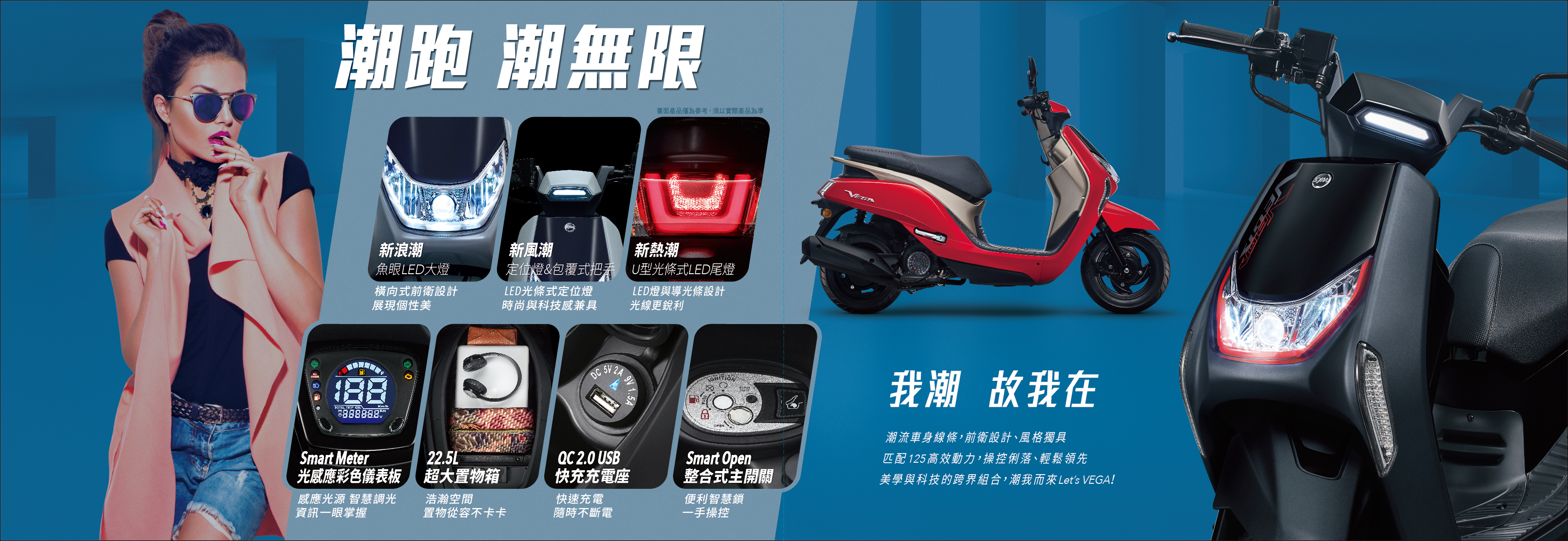 繼推出搭載三零科技的FNX,SYM於7月再推出一台潮流外型的未來潮跑VEGA125,VEGA是天文學中測定亮度的標準織女星之名,也是引領車界潮流的新指標。