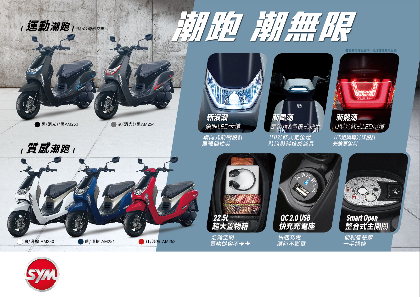1. 以往小車身的設計僅出現在100c.c.級距的車上,SYM實現小車身也能有大馬力的願望,搭載125c.c.的引擎。