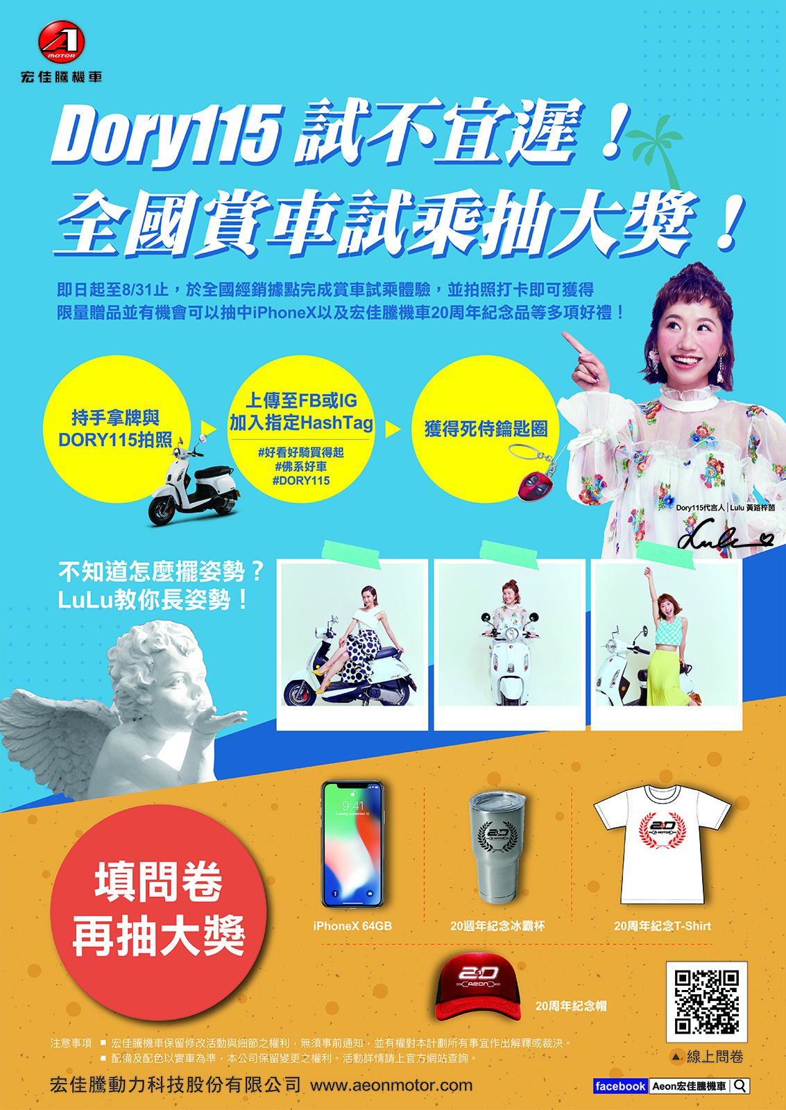 宏佳騰表示,好看、好騎、買得起的「Dory115」自推出以來廣受好評,為了讓民眾更了解其貼心設計,現在已經開放全國經銷門市賞車試乘。未來也將結合遠東百貨進行假日的RoadShow展出,讓更多民眾可以體會到Dory115的迷人之處。而適逢20週年,現在購買Dory115除了分期0利率的優惠外,更加贈丟車賠車險及乘客險雙重保障。更多活動及優惠訊息,趕快上宏佳騰官網與FB官方粉絲團了解。