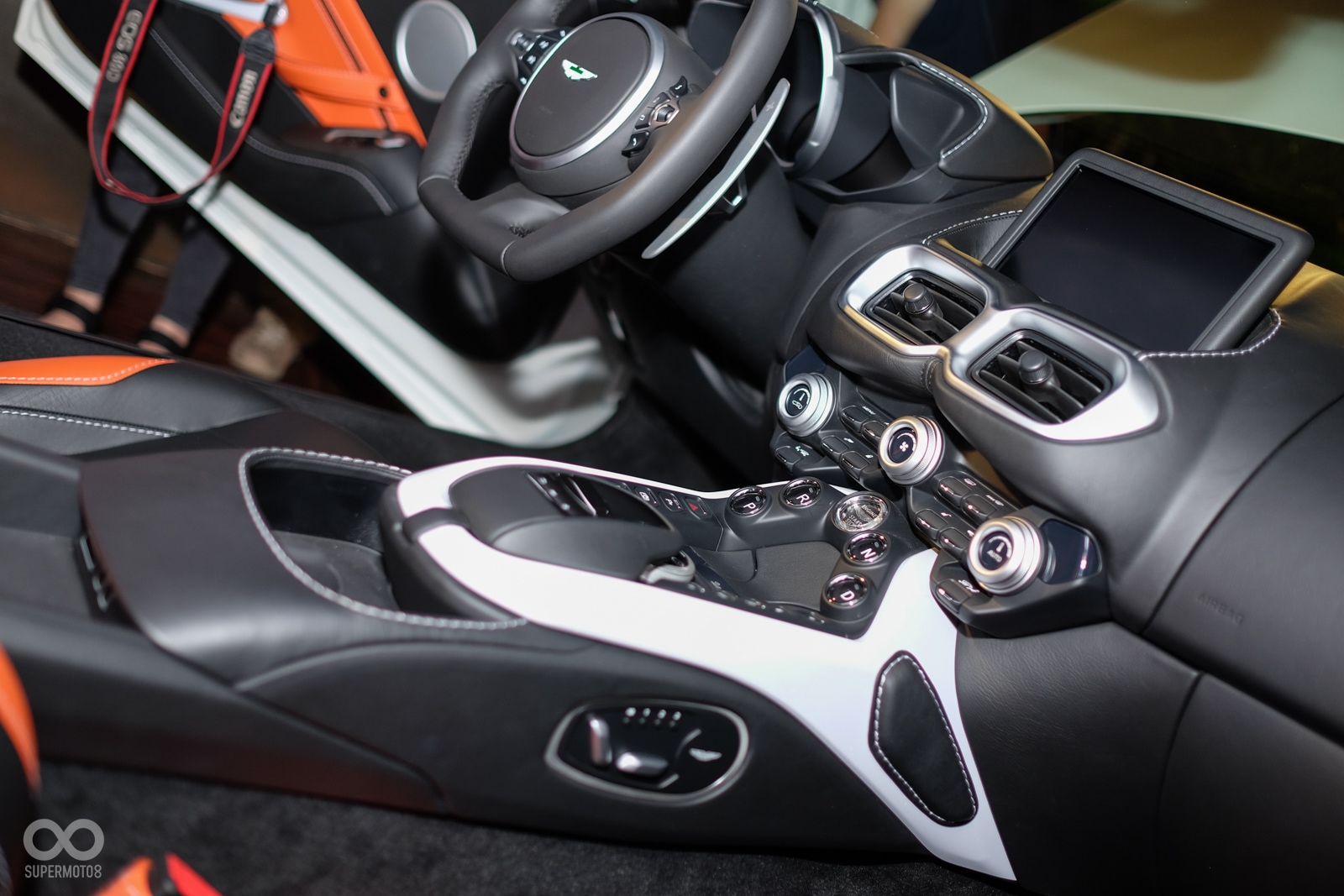 在車輛內裝部分,New Vantage完全回歸駕駛者本位,除了包覆性出色的運動座椅外,大膽前衛的儀表板設計亦是令人熱血沸騰的亮點之一,獨具品味的高質感旋鈕以及撥片按鍵,以三角形中控台呈現,將主要控件集中,使得功能分區明確清晰、得以加快直覺操作。而在空間表現上,除了駕乘空間更加舒適外,也擁有更寬敞的儲物空間,350升的後行李廂空間至少可容納兩組高爾夫球具,實用性大為加分。若是尋求獨一無二的個人化車室空間,「Q by ASTON MARTIN」亦能讓準車主的無限創意夢想成真。