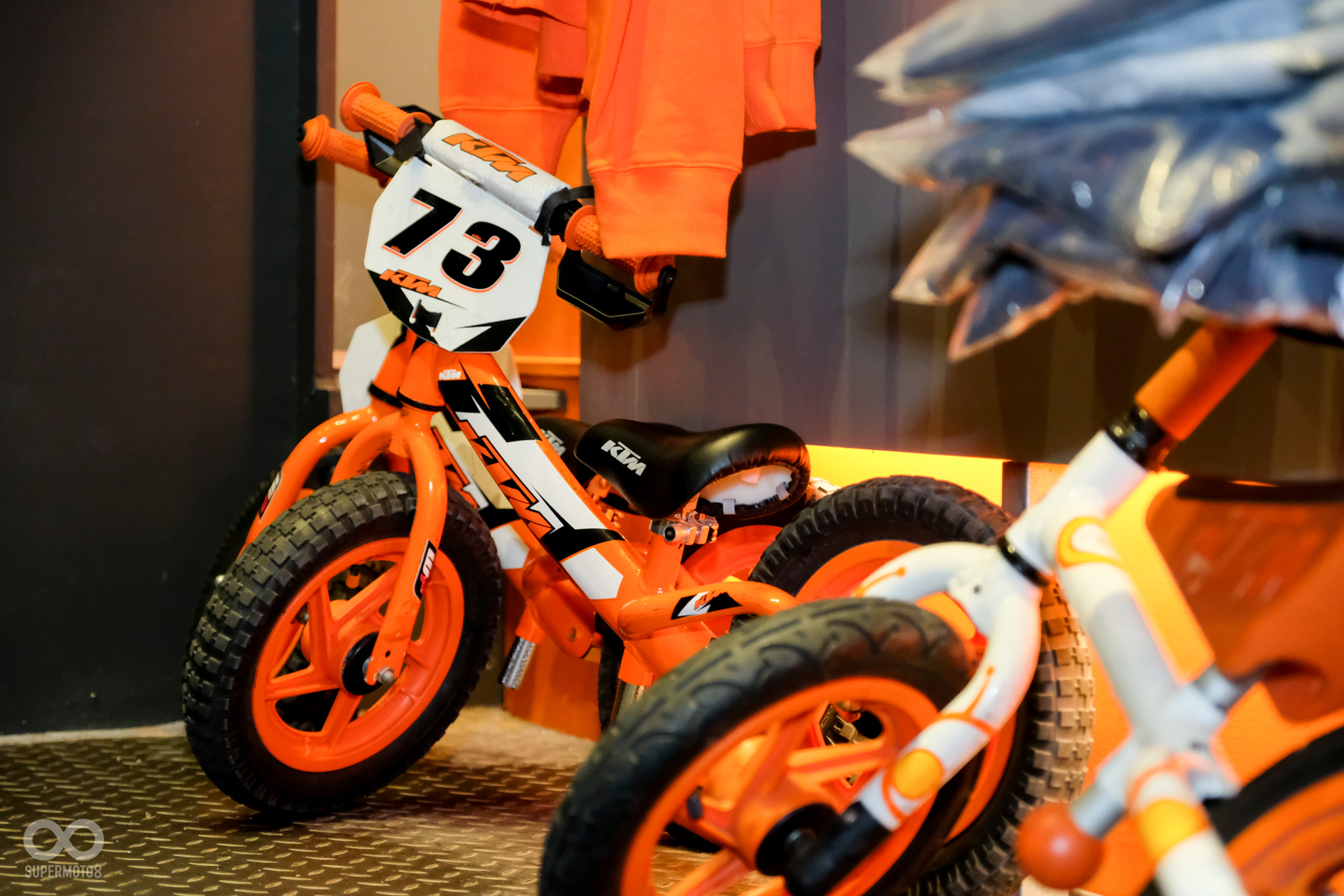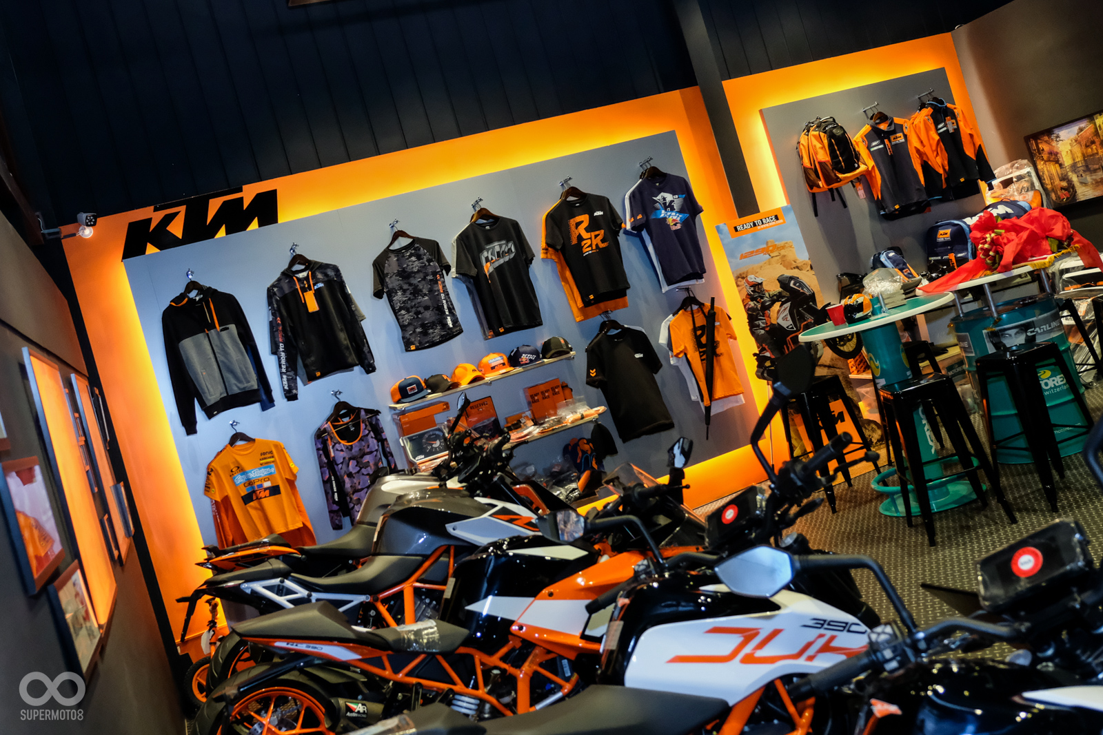 當然,同樣為安東貿易所代理的品牌:KTM、Cam-Am兩個品牌也未在高雄旗艦店中缺席,在展間後方特別佈置了獨立隔間成為這兩個品牌專屬展示間,雖然空間稍微小了些但是內部陳設同樣相當完整,並且也有許多品牌周邊部品販售。