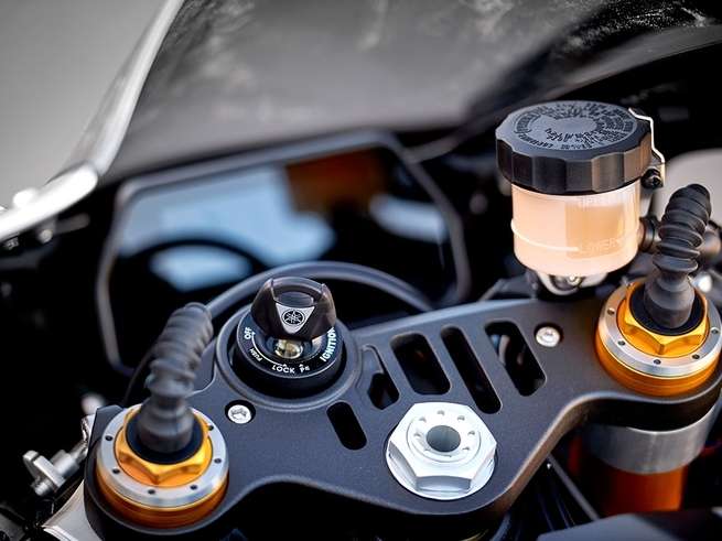 引擎部分在汽缸行程上再次縮減了1.3mm,缸徑行程來到79x50.9mm,為了提升轉速將曲軸連桿的材質更換為鈦合金,配上輕量鍛造鋁合金活塞,讓整體的動力往高轉速域移動,最大馬力來到200匹;車架部分依舊維持了初代的輕量化原則,將油箱更換為更輕的鋁合金油箱,輪框也換成鑄造的鎂合金材質,鎂合金油底殼加上輕量化車架,讓R1的車輛濕重維持在199公斤,馬力重量比維持在1:1。