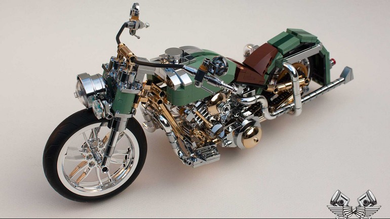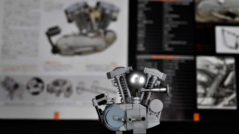 第一款作品從外形看去相當亮眼,除了一眼可以看出美式機車的造型外,大量的鍍鉻配件成為這輛1:10 Harley-Davidson Road King的招牌特徵,除了標準的樂高積木外,來自荷蘭的創作者更加入大量的定制鍍鉻件,並針對引擎下了許多功夫。