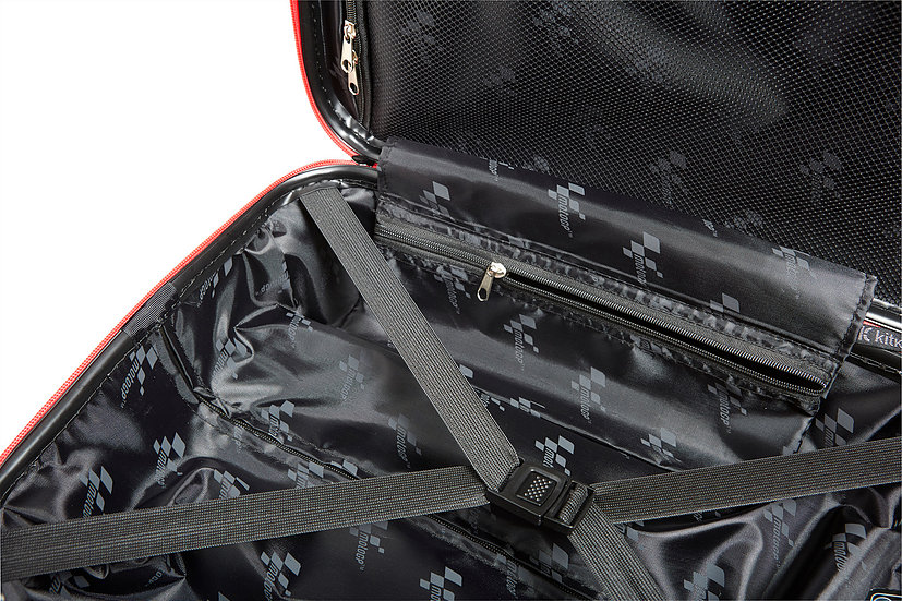 目前在MotoGP官方商城中,我們可以看見官方授權行李箱已經上架,外殼採用類碳纖維紋路呈現,並有斗大的MotoGP Logo彰顯這只行李箱的身份,內襯則是更為浮誇,大量的MotoGP標誌佈滿行李箱內部。至於相當重要的重量為2.6公斤,尺寸為46cm x 33cm x 20cm,對於搭乘飛機應該不會是太困難的問題。