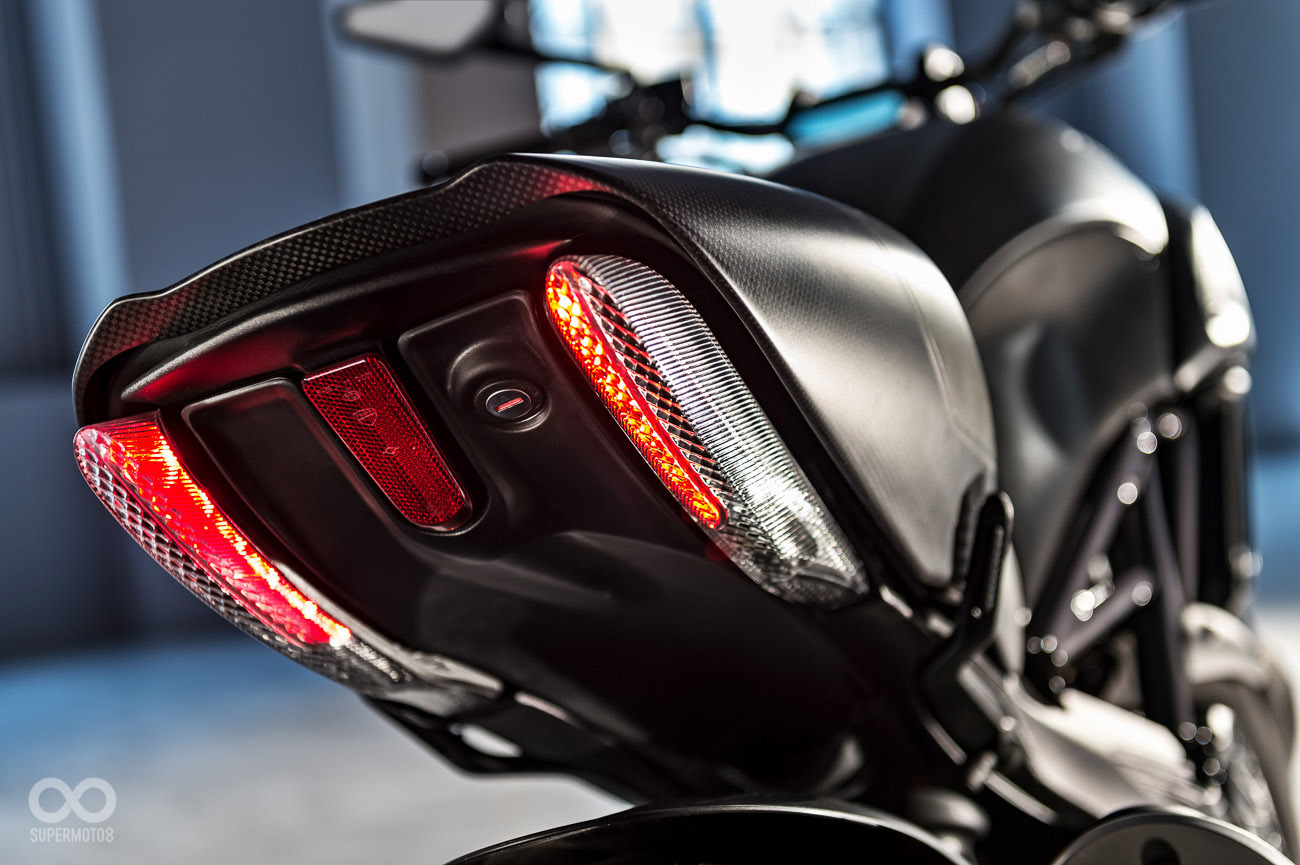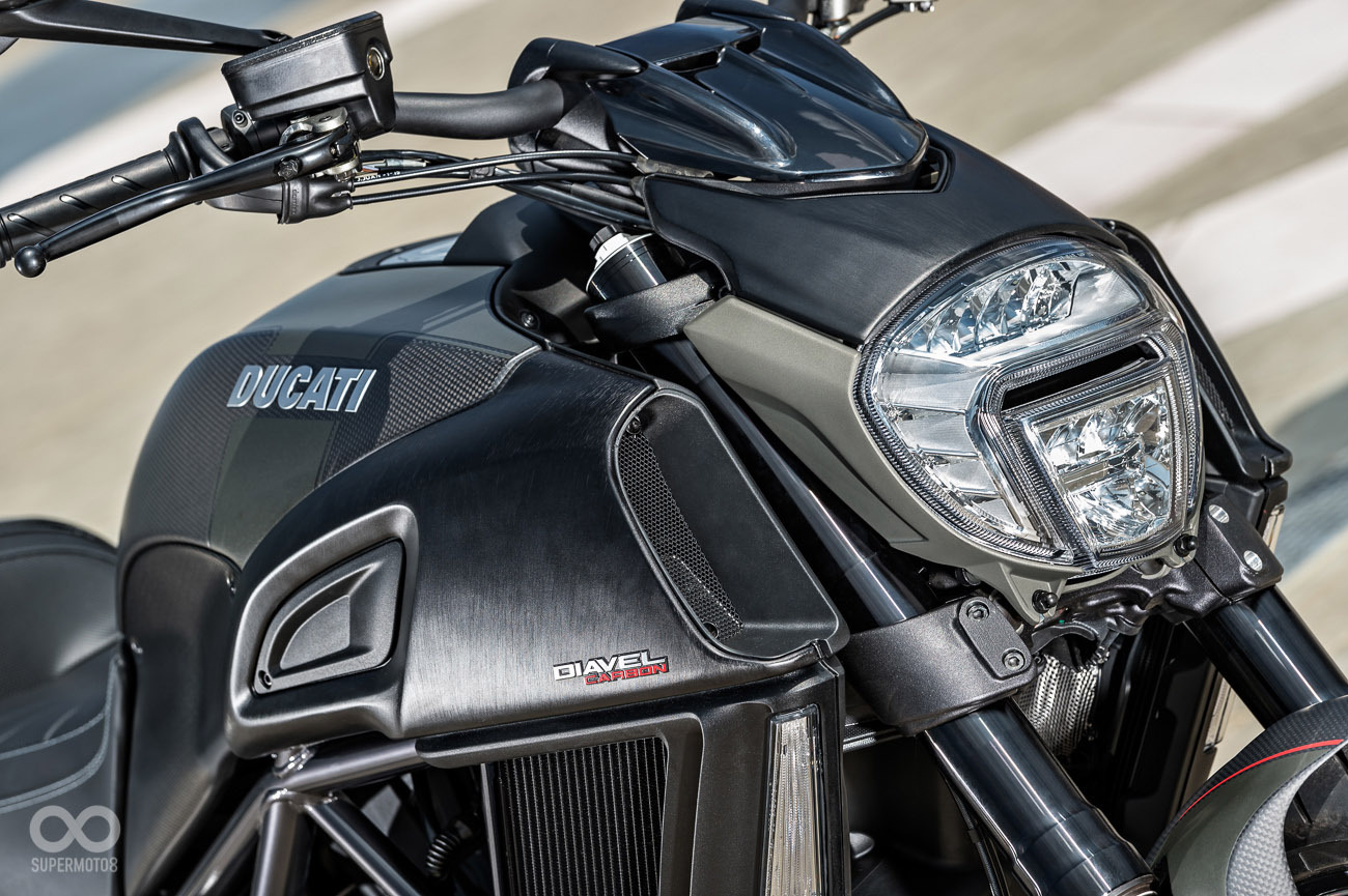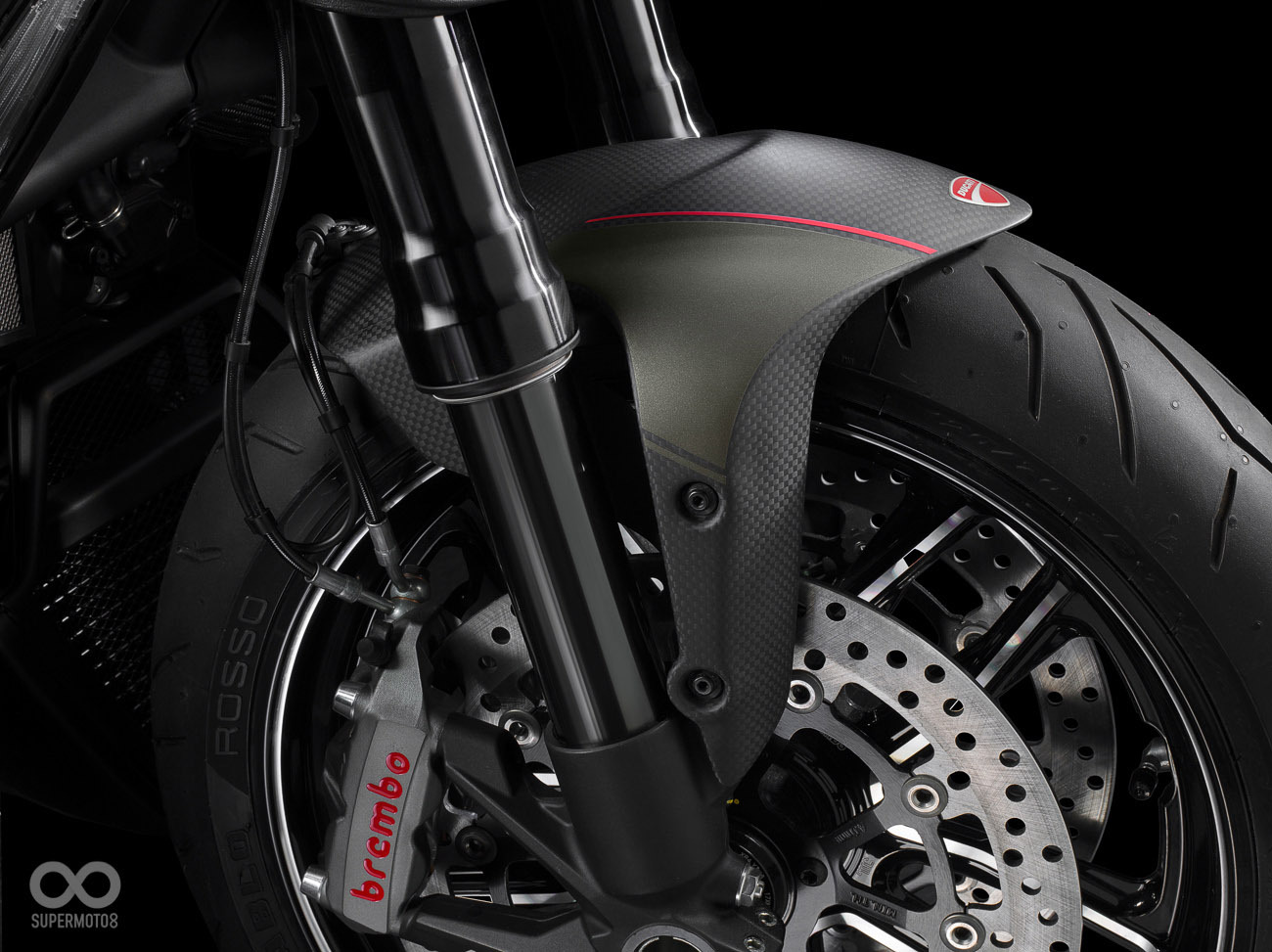 Carbon Edition 在車輛規格上與過去的Diavel並沒有做任何改變,所有的重心放在外觀上的進化。車殼部分大量使用碳纖維材質搭配霧黑烤漆與紅色拉線,散發一股非善類的邪惡氣勢。排氣管頭中段使用了特殊的磨砂陶瓷塗層,讓原廠管就有防盪布包覆的粗礦感受。而在全車霧黑與碳纖維交織下,車架與排氣尾段的金屬色成為亮點,也創造了鋼烈的車身質感。