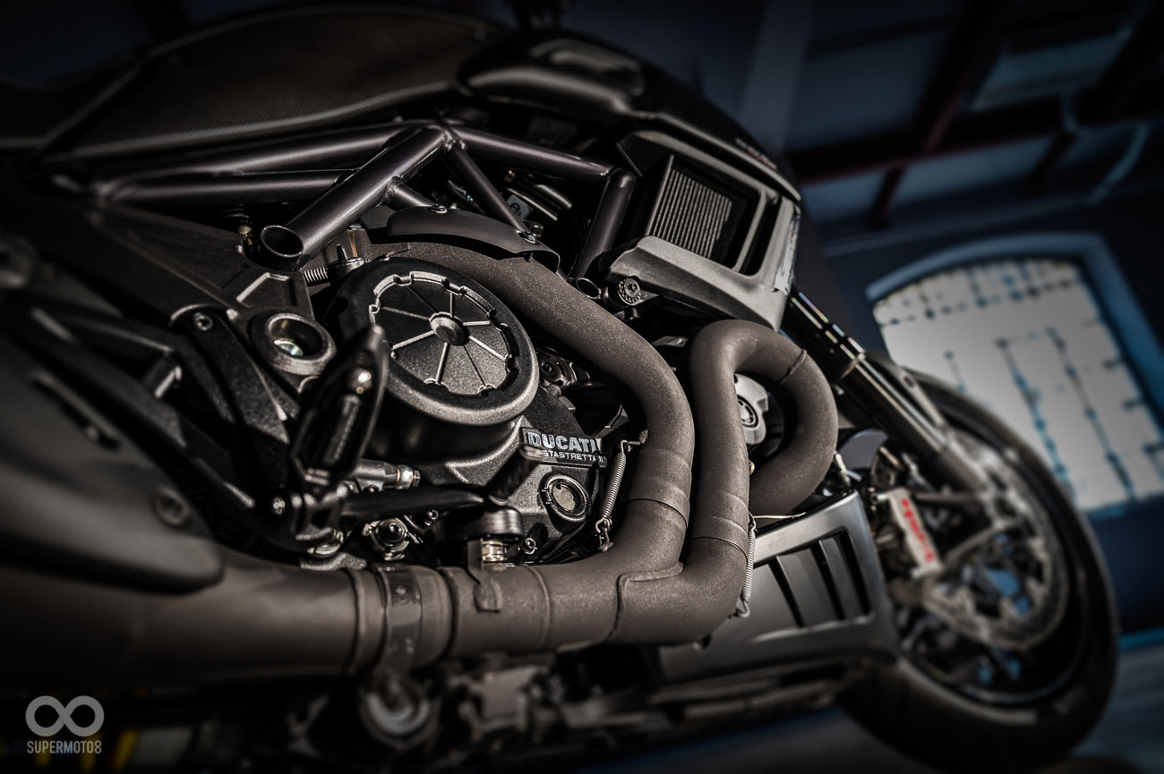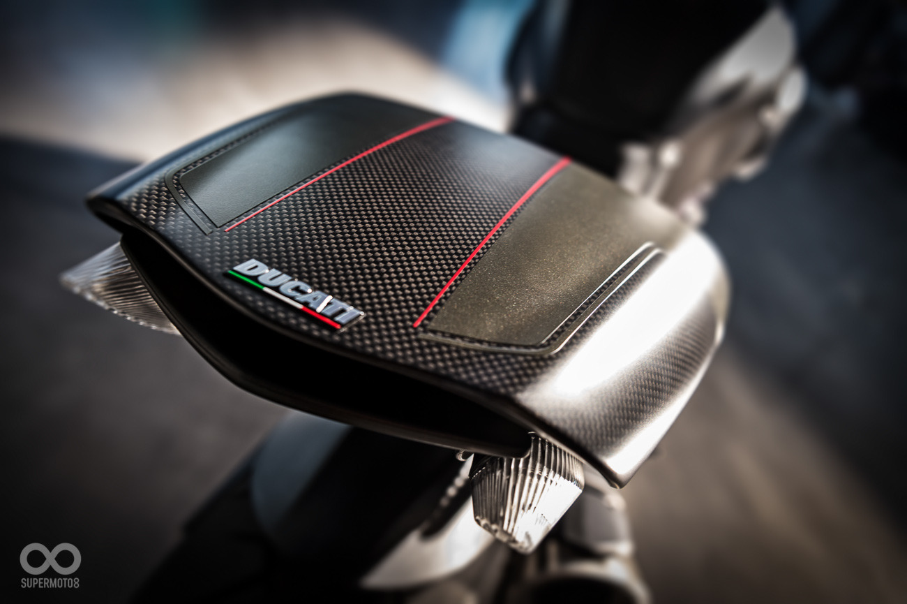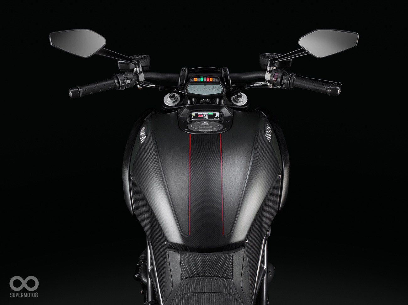 Carbon Edition 在車輛規格上與過去的Diavel並沒有做任何改變,所有的重心放在外觀上的進化。車殼部分大量使用碳纖維材質搭配霧黑烤漆與紅色拉線,散發一股非善類的邪惡氣勢。排氣管頭中段使用了特殊的磨砂陶瓷塗層,讓原廠管就有防盪布包覆的粗礦感受。而在全車霧黑與碳纖維交織下,車架與排氣尾段的金屬色成為亮點,也創造了鋼烈的車身質感。