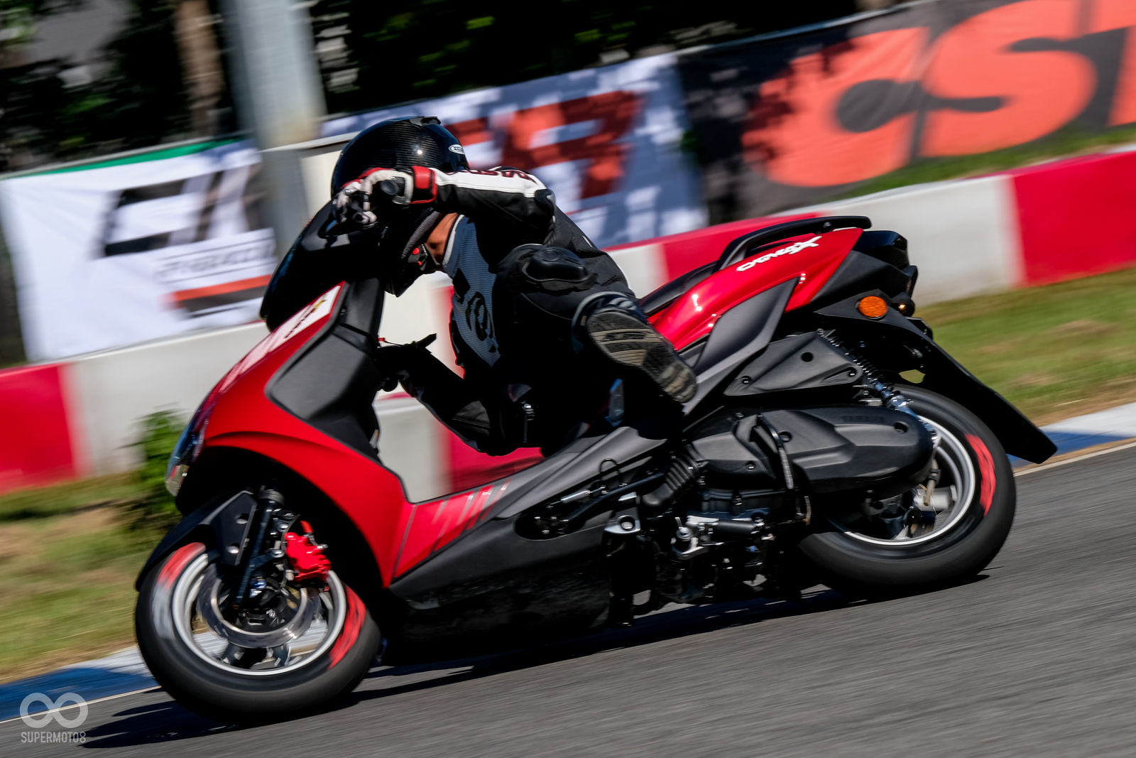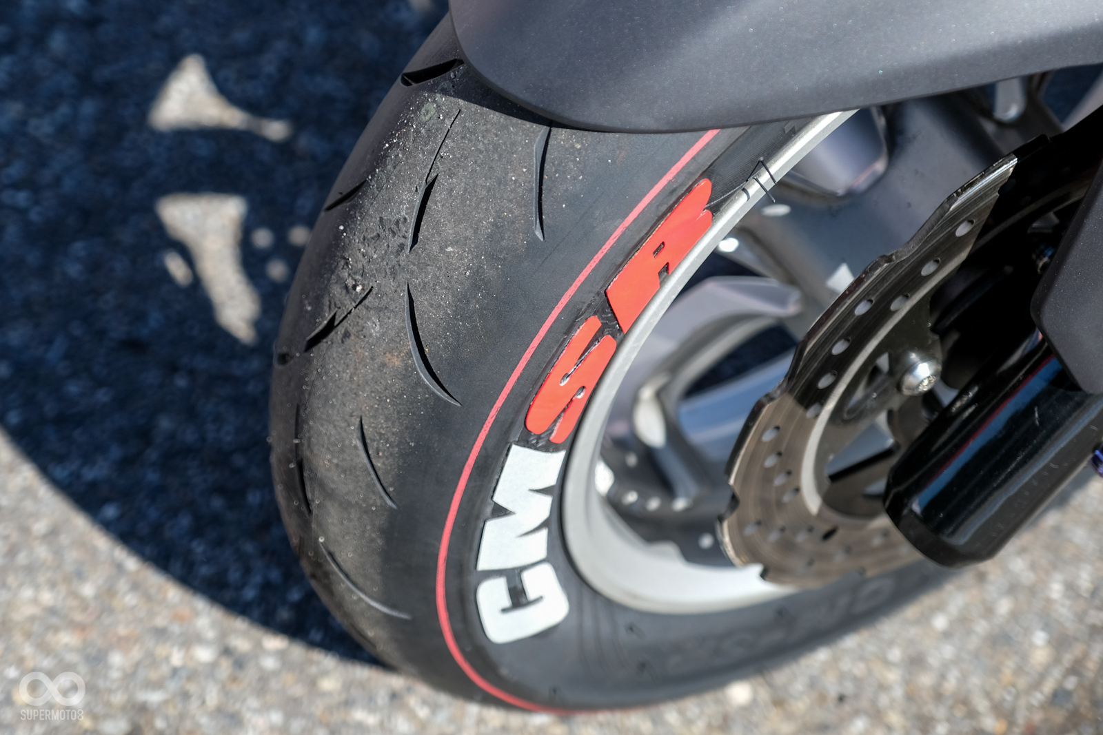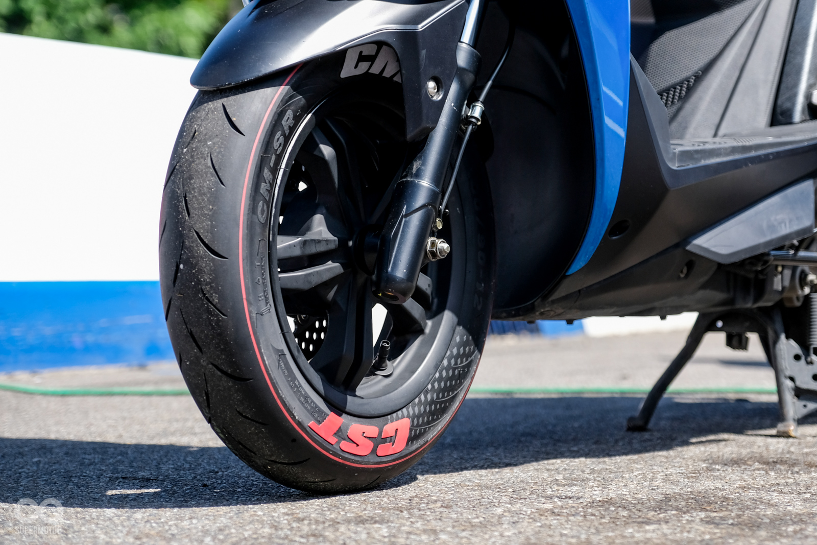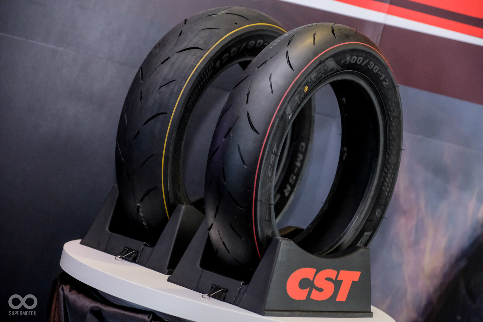 目前CST CM-SR產品設定以競技取向為主,所以僅提供100/90-12、120/80-12的前後輪組合,如果原廠車款裝配可能會有掃土除等機會發生,車主購買、安裝前須多加注意,但是正新輪胎也在今天的活動中宣布將會推出耐磨性更好的CM-SSR(Small SR)供車主選購,達到熱血、耐磨的平衡點。