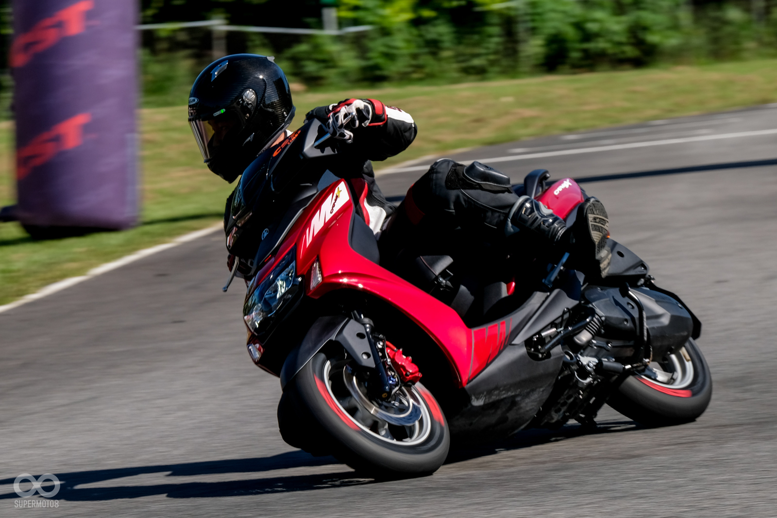由於筆者對於速克達胎款較不熟悉,自己的速可達也都為了經濟性選擇進口休旅胎為主。本次試乘的車款為PGO ALPHA MAX 125,並且為第一組上場試乘的媒體。首先在前幾個彎即可感受到工作溫度尚未達成,在彎中會有非常細微的不安定感,加上今天的胎壓設定為了符合產品定位,前後輪皆低於20psi,初期的表現我想大概是許多運動車款的原廠配胎,已達工作溫度的騎乘感受。