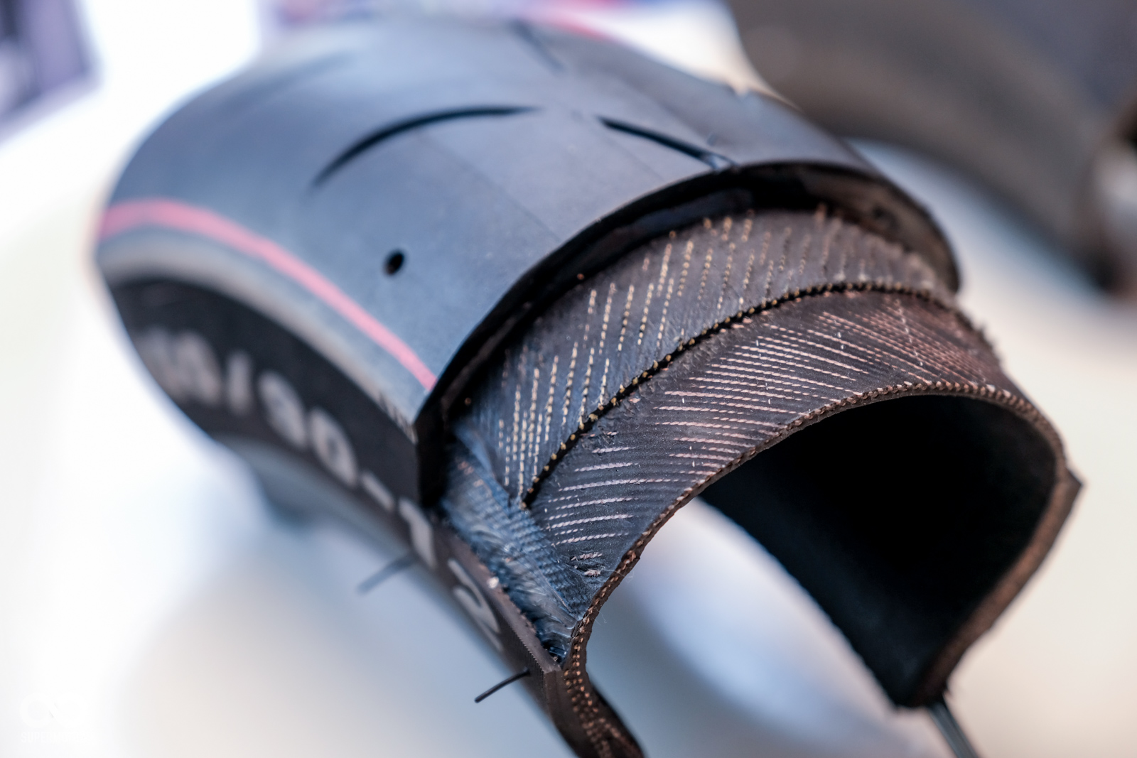 為了在大傾角時獲得優異的抓地力,胎體也導入複合曲率設計,對於傾倒靈活性有效提升,並在大傾角時擁有較大的抓地面積,降低失去抓地力的風險,眼尖的讀者或許也有注意到,CST CM-SR胎肩並無胎紋,可擁有類似光頭胎的支撐性與抓地力。