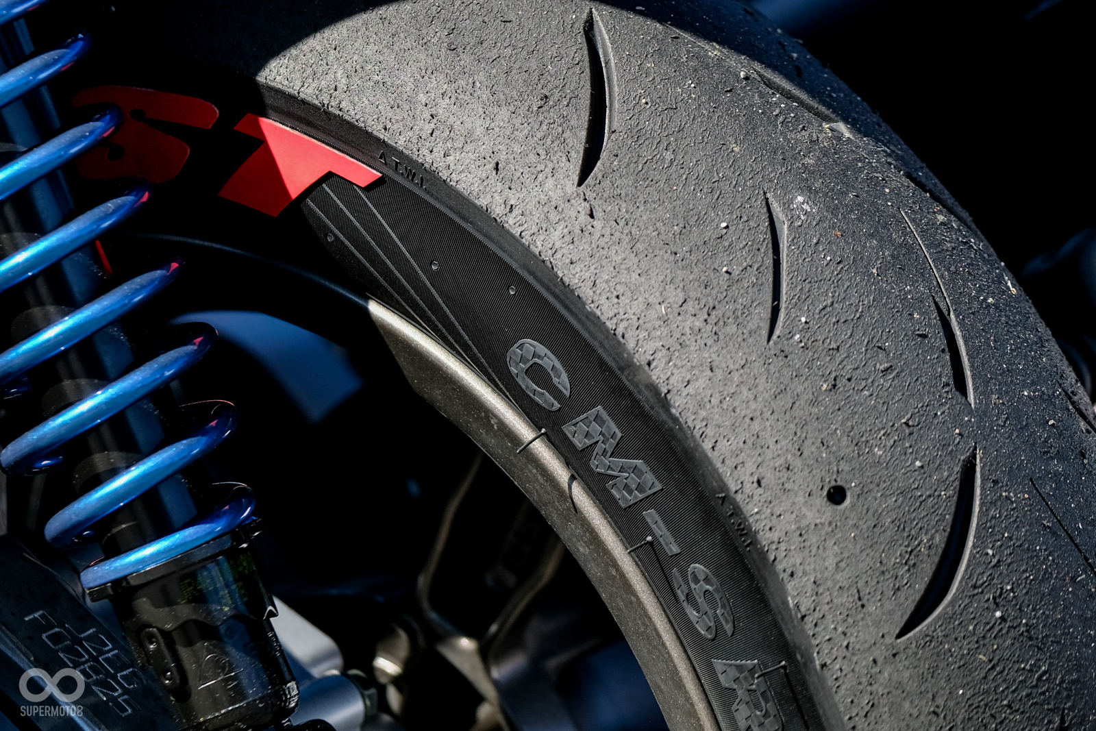 但隨著輪胎達到工作溫度,安定表現明顯提升,尤其是在重煞車入彎以及S彎的左右快速切換。對於較低階的胎款來說,面對重煞車情況難免會感受到或大或小的扭動感,CST CM-SR可以克服這項問題,確保入彎前車輛穩定,提供足夠信心讓騎士將車丟入彎道。