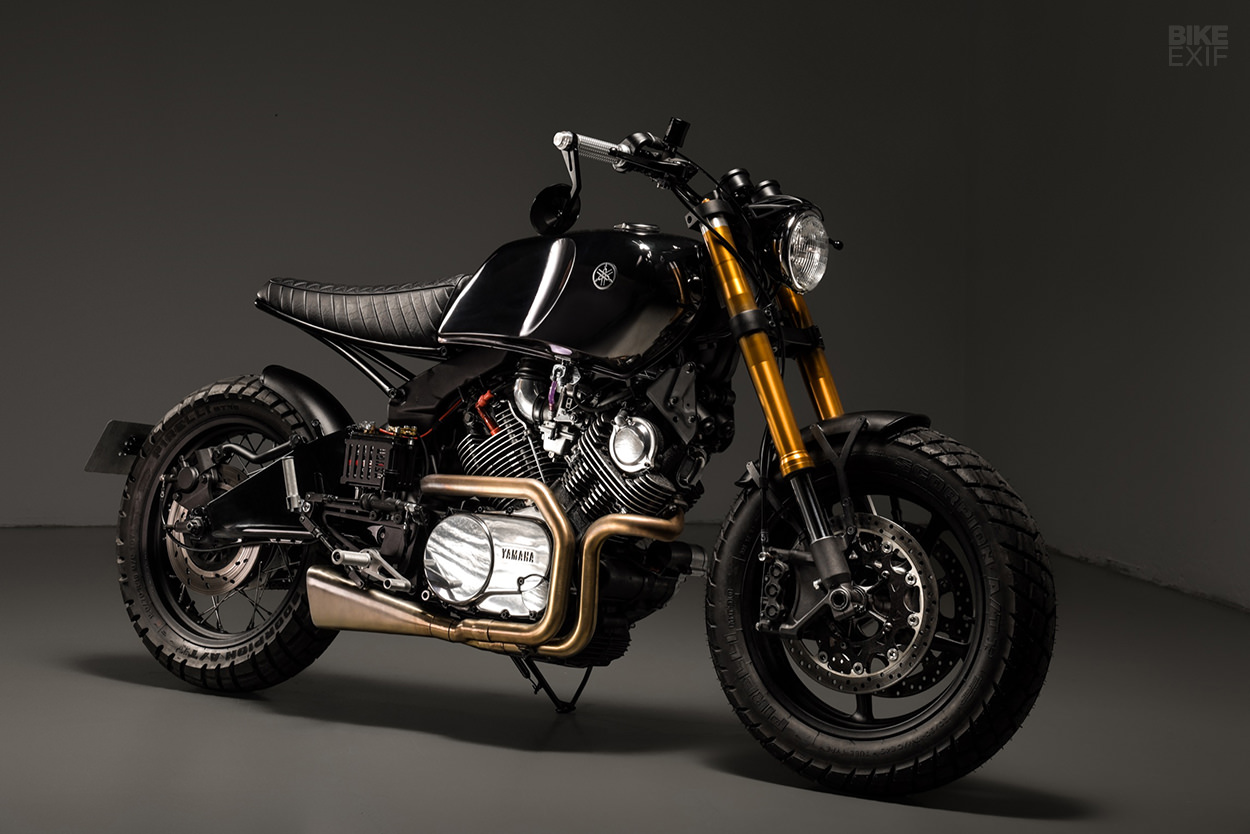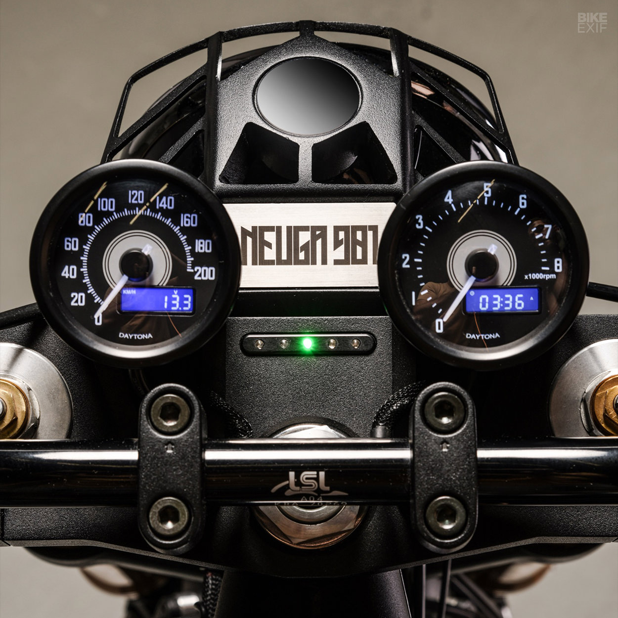 不要說這台「981」YAMAHA TR 1了,連原生TR 1可能都沒多少人能一睹風采。YAMAHA TR 1 始於1981年,別名XV1000,做為YAMAHA旗下的運動休旅車款,四行程981c.c. V-Twin引擎創造出52kW的功率以及80nm的扭力,最高時速來到190km/hr,其實TR 1在整個YAMAHA 休旅車款族譜當中的時間並不常,但特殊的V-Twin依然讓Neuga興致勃勃,以黑暗奢華的配色著手了關於TR 1這部骨董的重新翻玩,這個氣氛也讓我們嗅到了一些改裝大師Stefan Venier手上的頂尖作品味道。