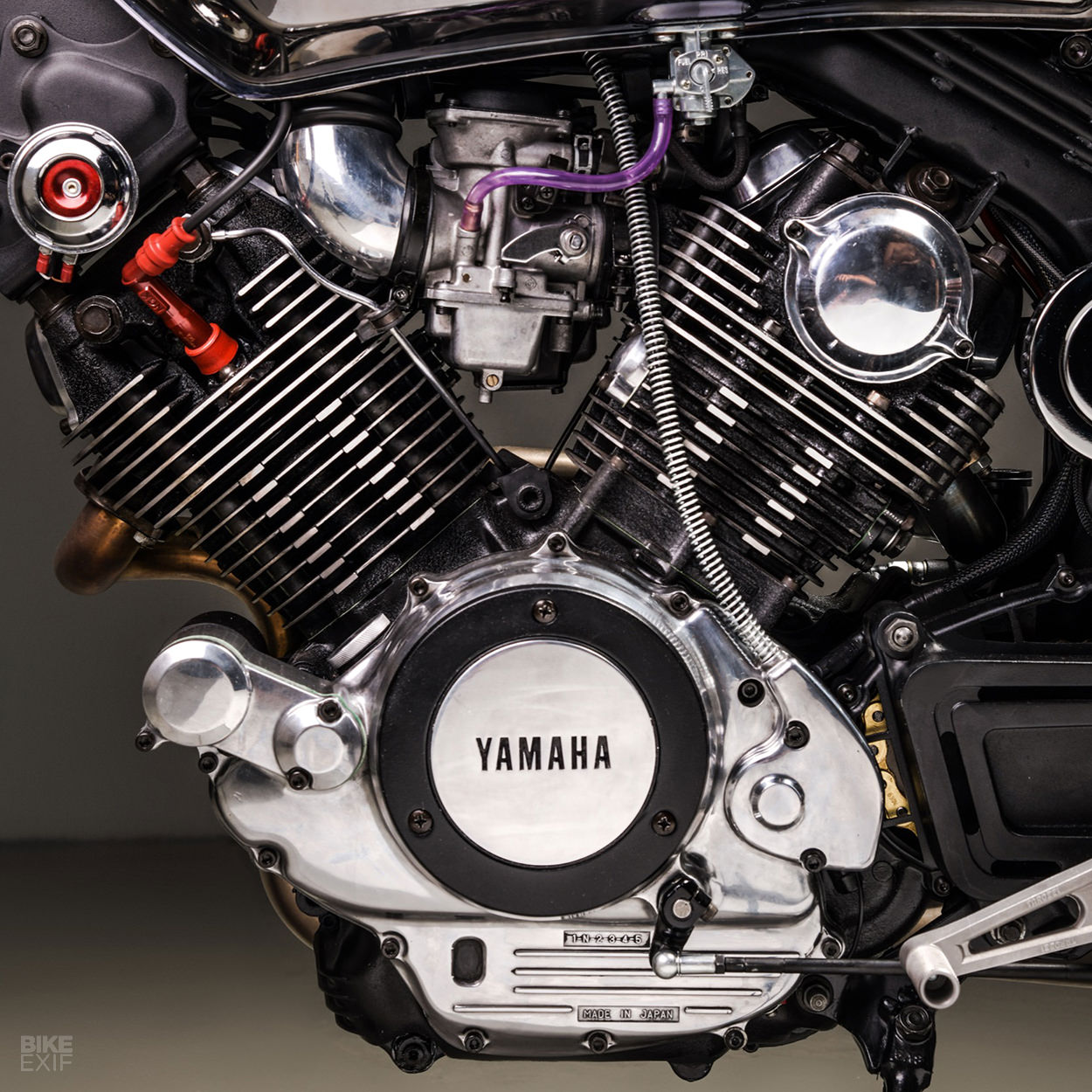 最初,Benedek和團隊成為Daniel和Robert專注於這顆YAMAHA 75度的V-Twin引擎,「我們需要一具完全翻新並且值得信賴的心臟,所以我們徹底的翻修了所有的油封、油泵、凸輪練、凸輪軸還有各種墊片。」Benedek說,「當然,汽缸頭以及所有Case都進行了重新拋光和烤漆。」