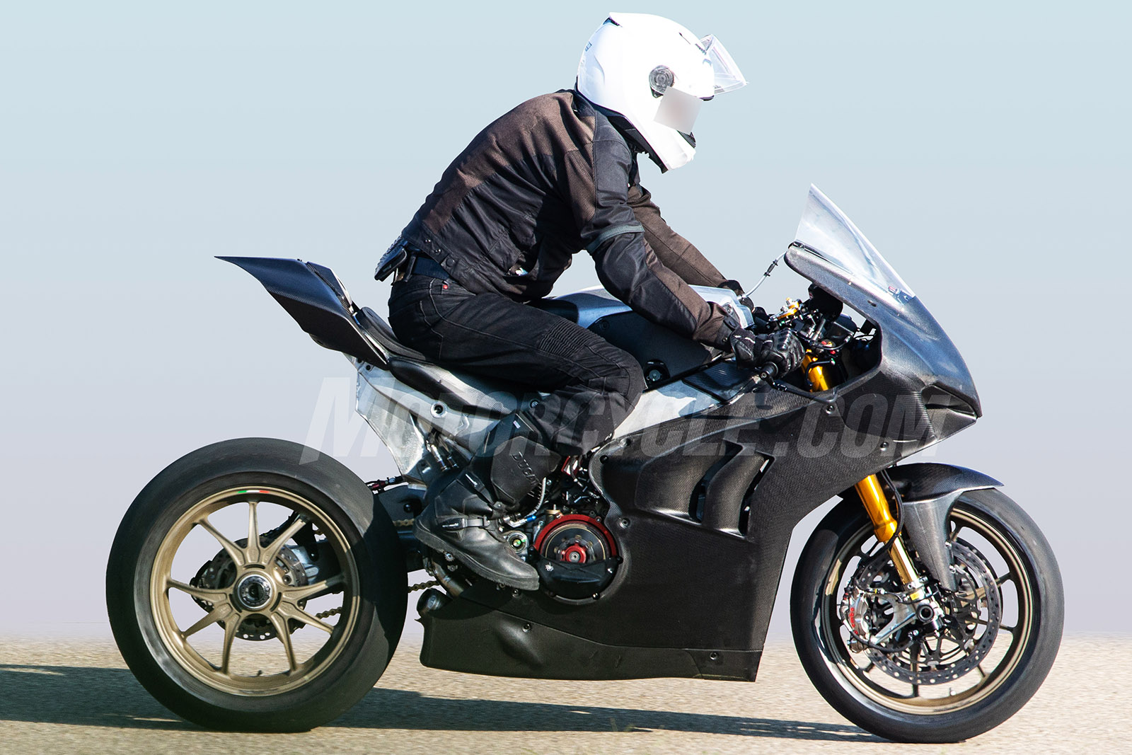 根據之前的消息指出,Ducati正計畫將小翅膀下放至Panigale V4上頭,雖然測試車上未發現神秘整流翼,但可在車側看見未使用的鎖點,或許在WSBK戰場上可以看見最終著重空氣力學的版本。
