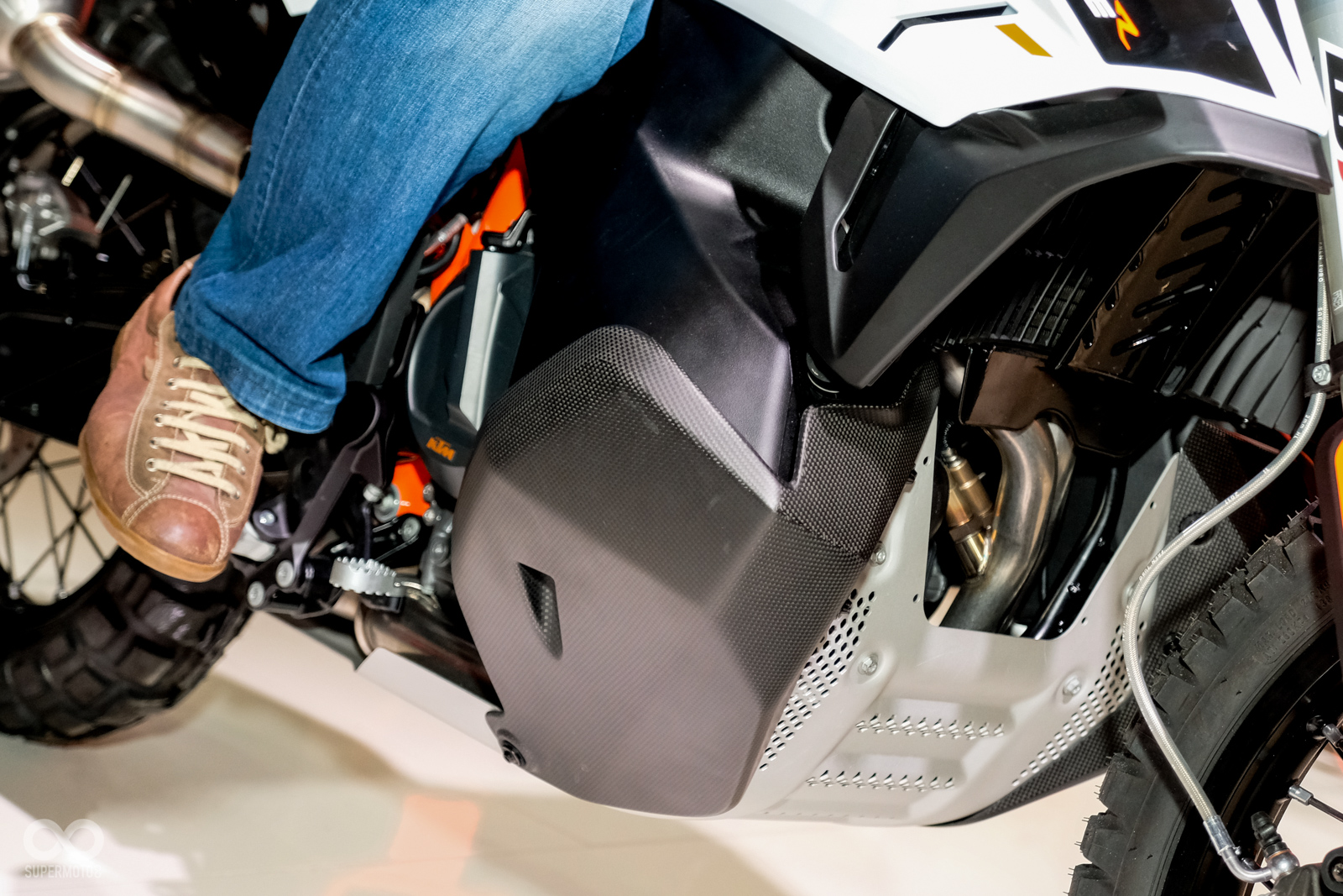 首先一般版的790 Adventure,採用自家的WP前後懸吊避震器,前懸吊用的是WP APEX 43芯前叉,擁有200mm的行程,後懸吊同樣也搭配了WP的中置避震器,行程同樣也是200mm;進階版的790 Adventure R則是採用了更長行程的WP XPLOR懸吊系統,前後的行程也都提升至240mm。