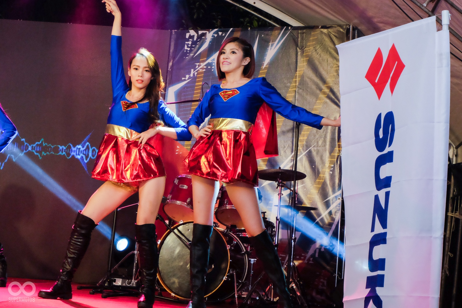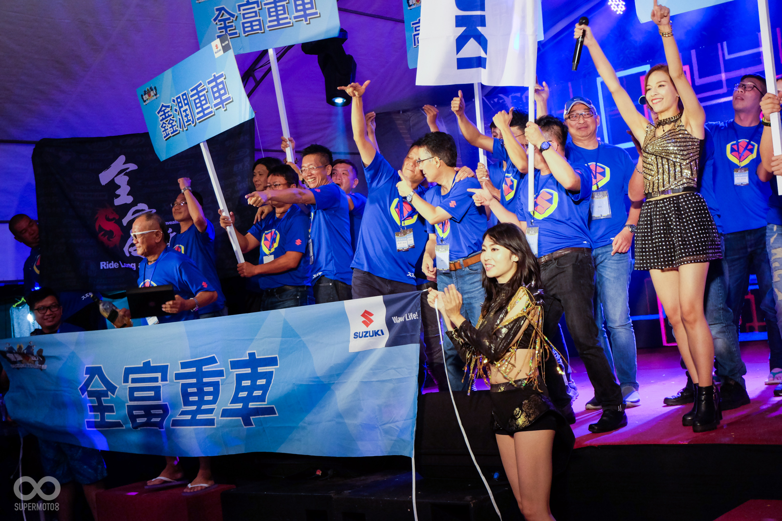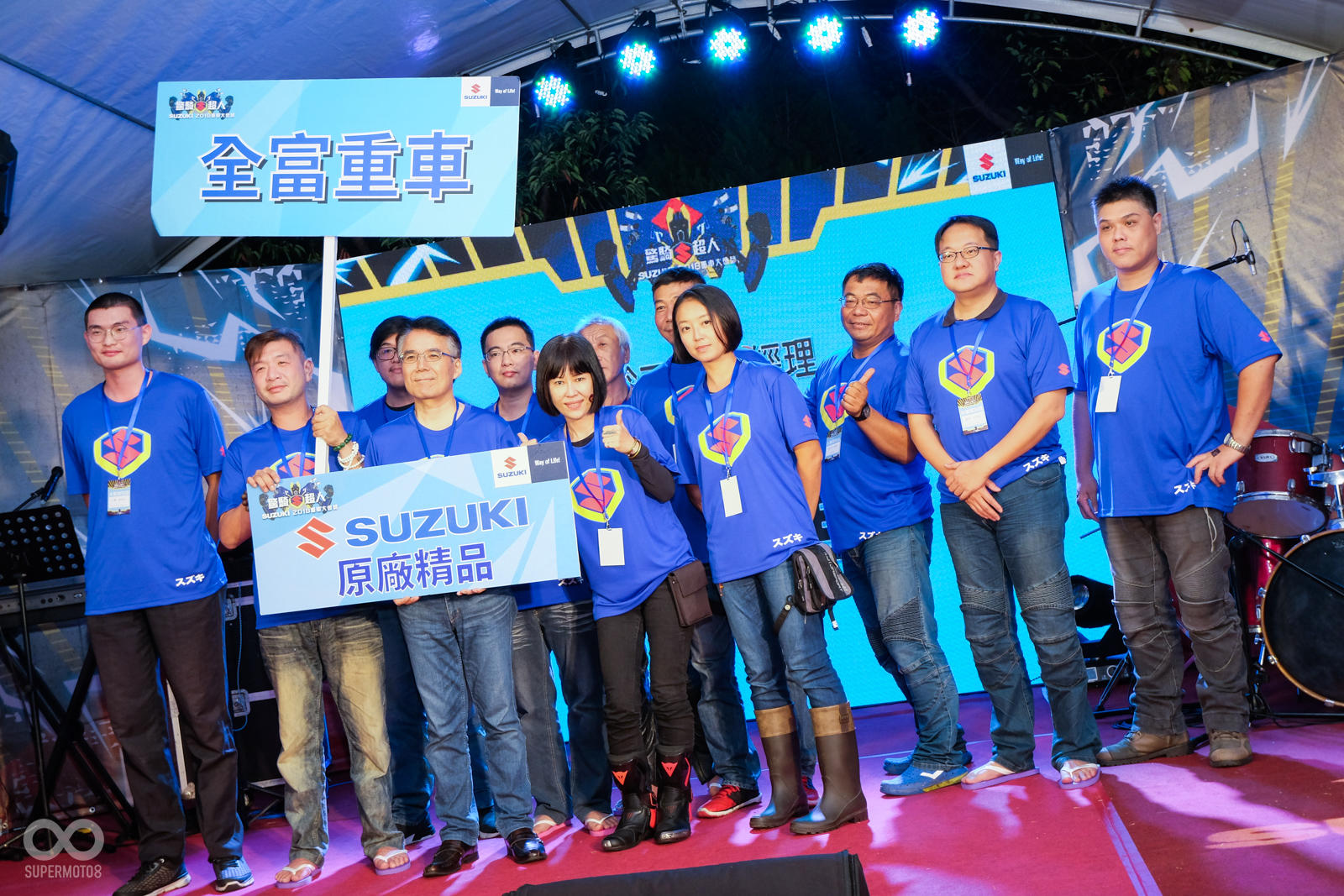 今年SUZUKI台鈴工業也以驚奇S超人作為口號,在日暉國際度假村內擺設了將近60桌的宴席與所有的車友們同歡,並且美麗的舞蹈老師們也打扮成的S女超人替晚宴進行開幕的表演活動。