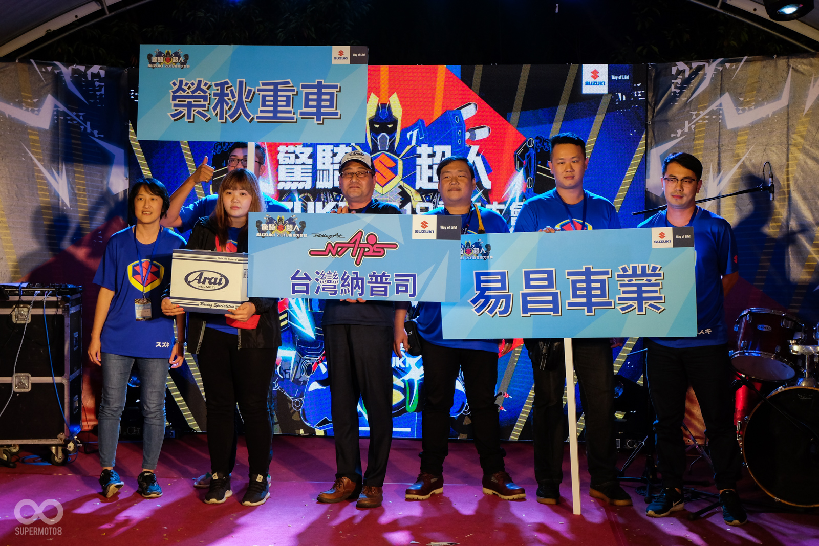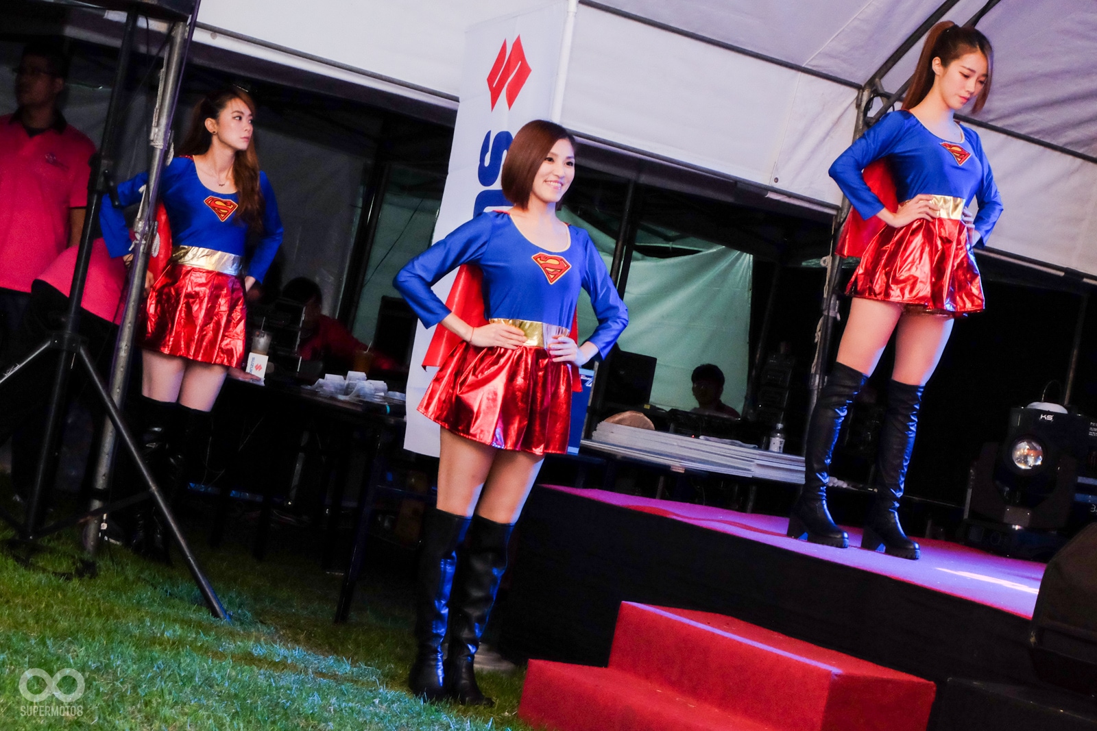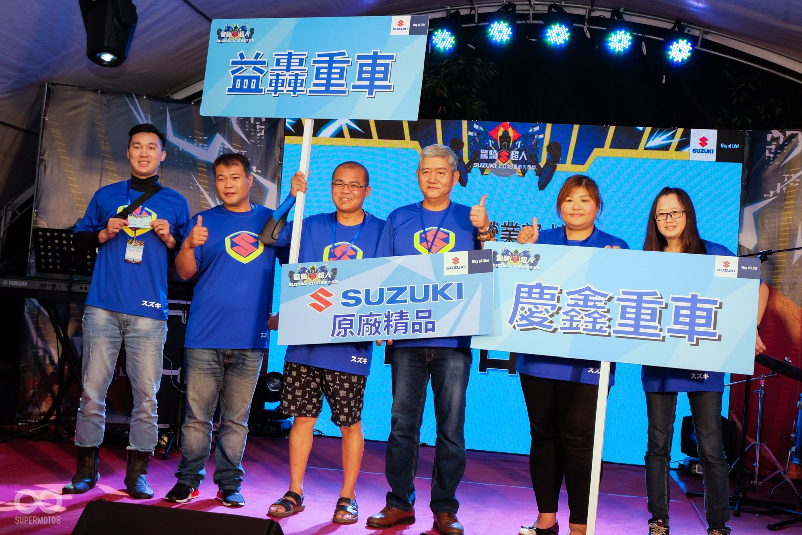 今年SUZUKI台鈴工業也以驚奇S超人作為口號,在日暉國際度假村內擺設了將近60桌的宴席與所有的車友們同歡,並且美麗的舞蹈老師們也打扮成的S女超人替晚宴進行開幕的表演活動。