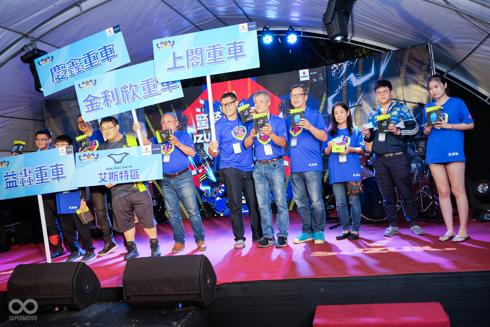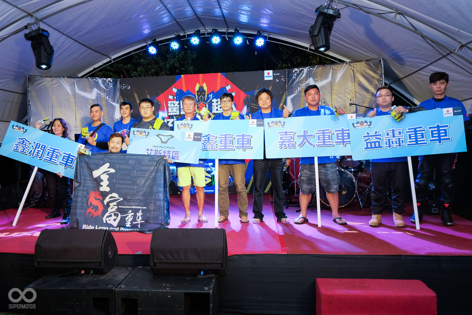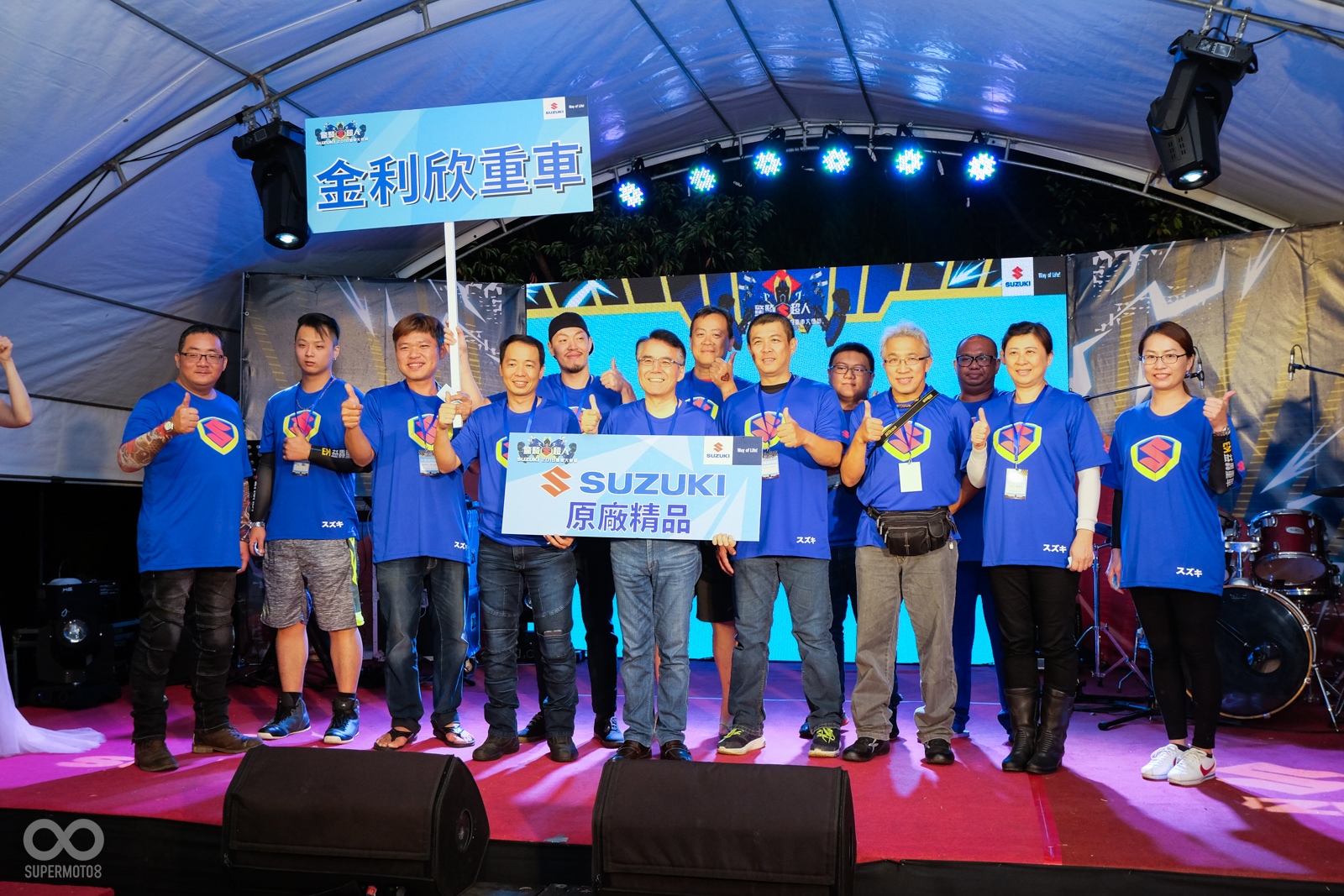 在黃教信董事長以及內海章總經理的致詞結束後,所有的台鈴工業長官們,也上台向所有參與的車友們致謝,感謝所有SUZUKI車友以及經銷夥伴們今年的支持。