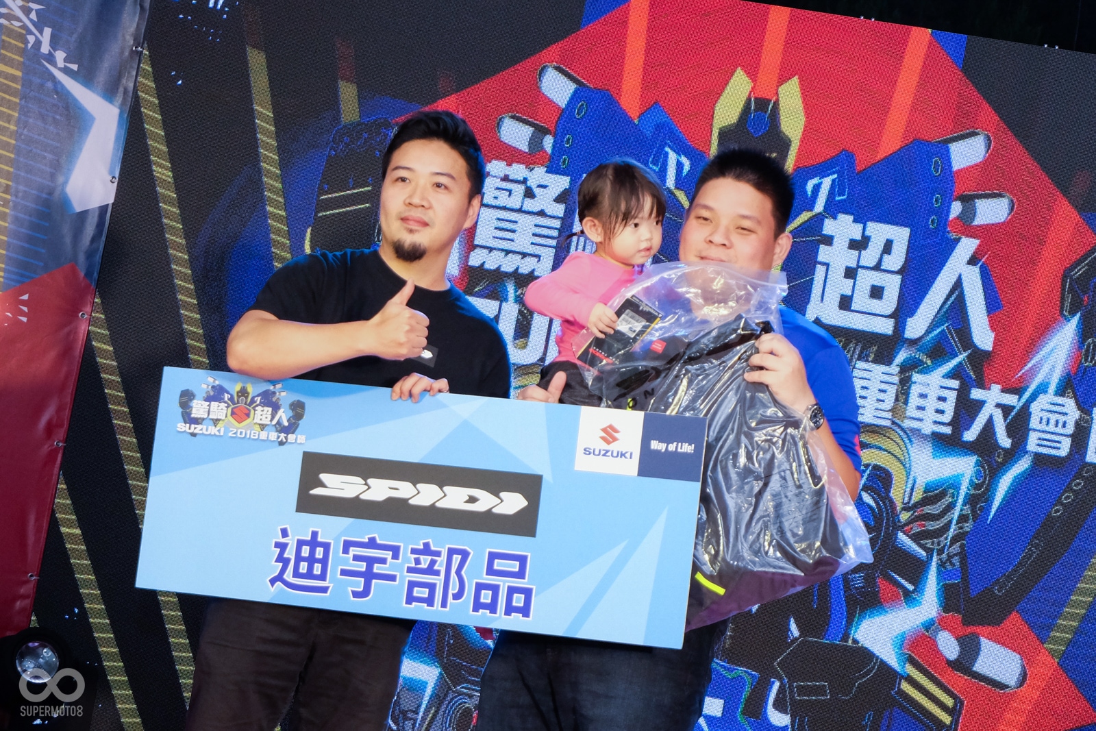 在愛樂團精彩的演唱以及舞蹈表演結束之後,晚宴上重頭戲中的重頭戲:抽獎摸彩活動,也毫不拖泥帶水地展開,今年SUZUKI提供了大量的原廠精品以及贊助廠商提供的獎品,給所有的車主們進行摸彩抽獎,現場的獎品品項之多,等待領獎的車友們,甚至一度在舞台旁排出一條長長的人龍,可見獎項的豐厚程度。