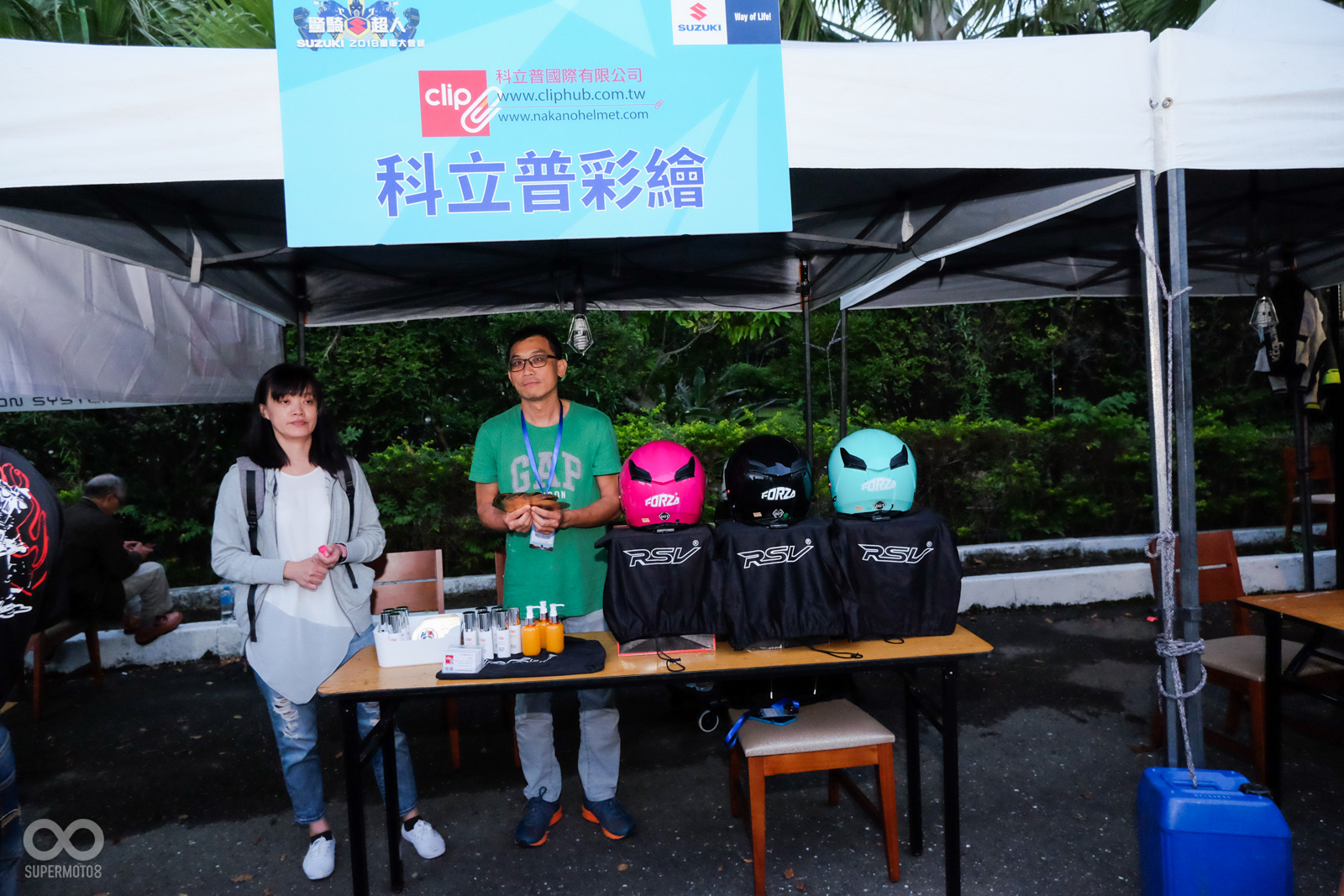 在活動會場,SUZUKI也邀請到了許多的贊助廠商前來擺攤,讓車友們除了能夠享受騎車出遊的樂趣之外,也能在抵達目的地之後,享受一年一度的特別優惠和折扣,也趁機補充一下自己的裝備行頭。