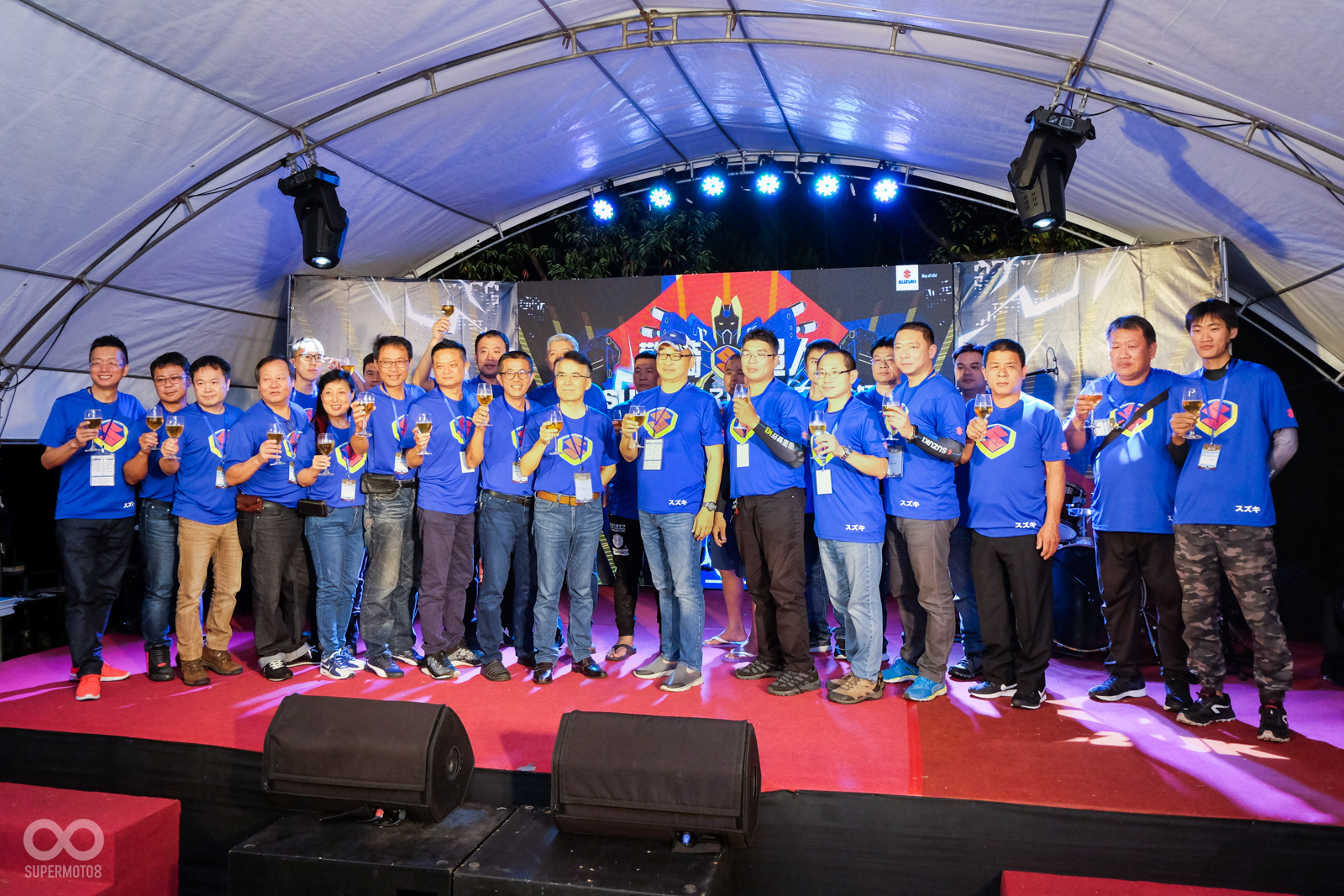 隨著太陽西下,大會師活動也進入了重頭戲的晚宴時刻,SUZUKI 台鈴工業也在晚宴開始前,幫今年所有前來與會的車友和車隊進行大合照留念,同時主持人也在拍照結束之後,宣布今晚的大會師晚宴正式開始。
