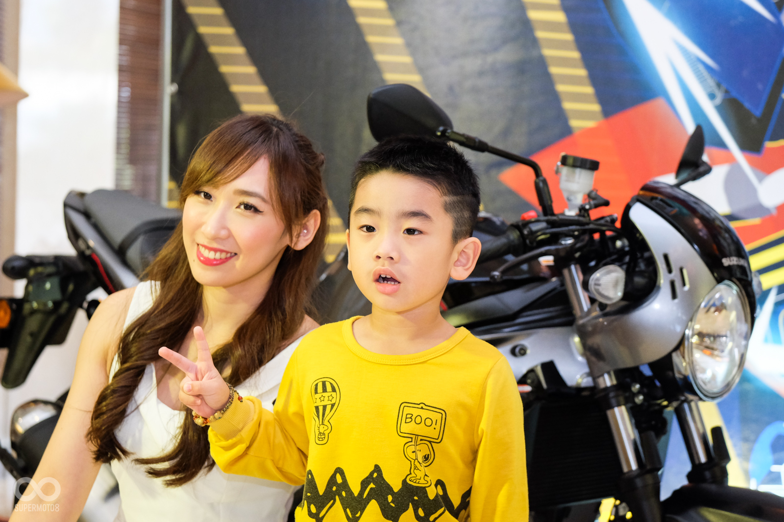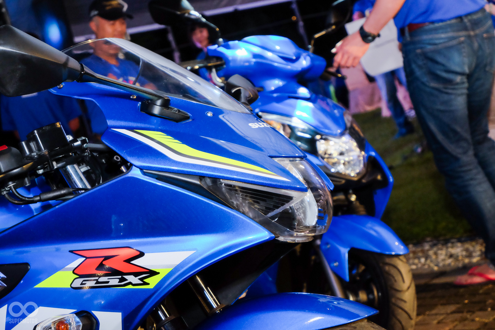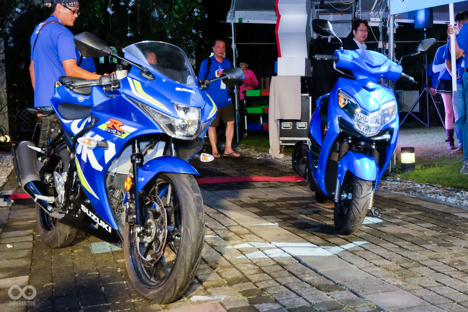 抽獎活動的最後,SUZUKI 台鈴工業更是安排了兩個神秘大獎,讓所有的車友們有機會帶回家,在全場屏氣凝神關注在舞台上時,兩項大獎悄悄的從會場中央的走道入場,SUZUKI 台鈴工業在今年相當大手筆地提供了一台熱銷的輕檔車GSX-R 150小阿魯以及大受好評的125速可達車款Swish給所有與會的車友們。