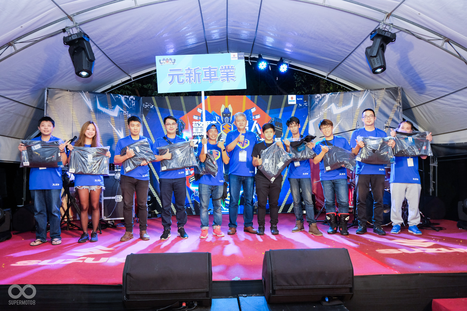 在最後神秘大獎摸彩結束之後,愛樂團以及舞蹈老師們也再度上台,將現場的氣氛帶到最高點,活動的最後,DJ也邀請所有的車友們齊聚舞台前的搖滾區,台鈴的長官們也一同上台歡唱,2018 SUZUKI驚奇S超人重機大會師就在歡樂的氣氛當中完美的落幕。