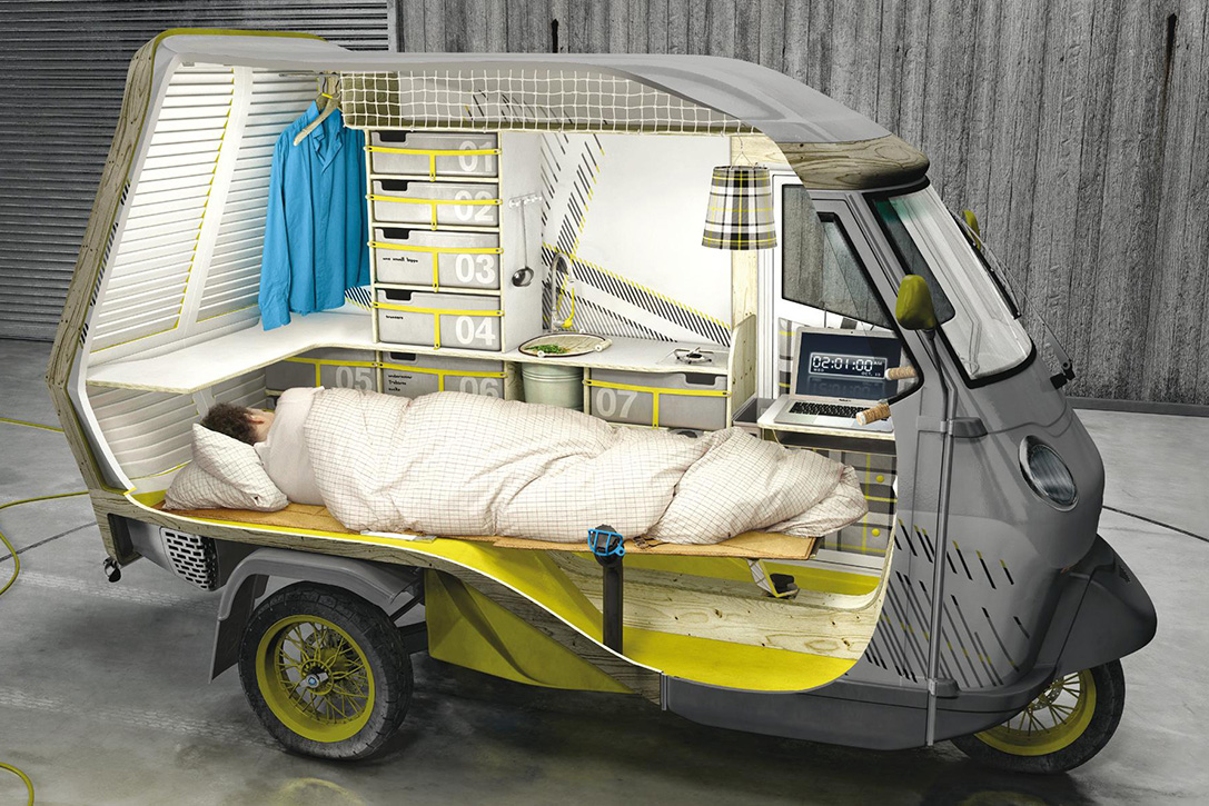 這輛Bufalino是來自德國的工業設計師-Comanns之手,雖然Bufalino還處於在概念階段,所以我們還不能得知這輛車睡起來究竟怎麼樣,但從圖片上看起來是真的有一些侷促,即便如此,這輛車的內部有著完整的生活設備,包含了一張床、兩個座位、烹飪區、洗臉盆、儲水空間甚至還有一台小冰箱!你很難想像在這麼小的三輪車內可以塞的下這麼多東西!連小編都想要趕快買一輛啊!