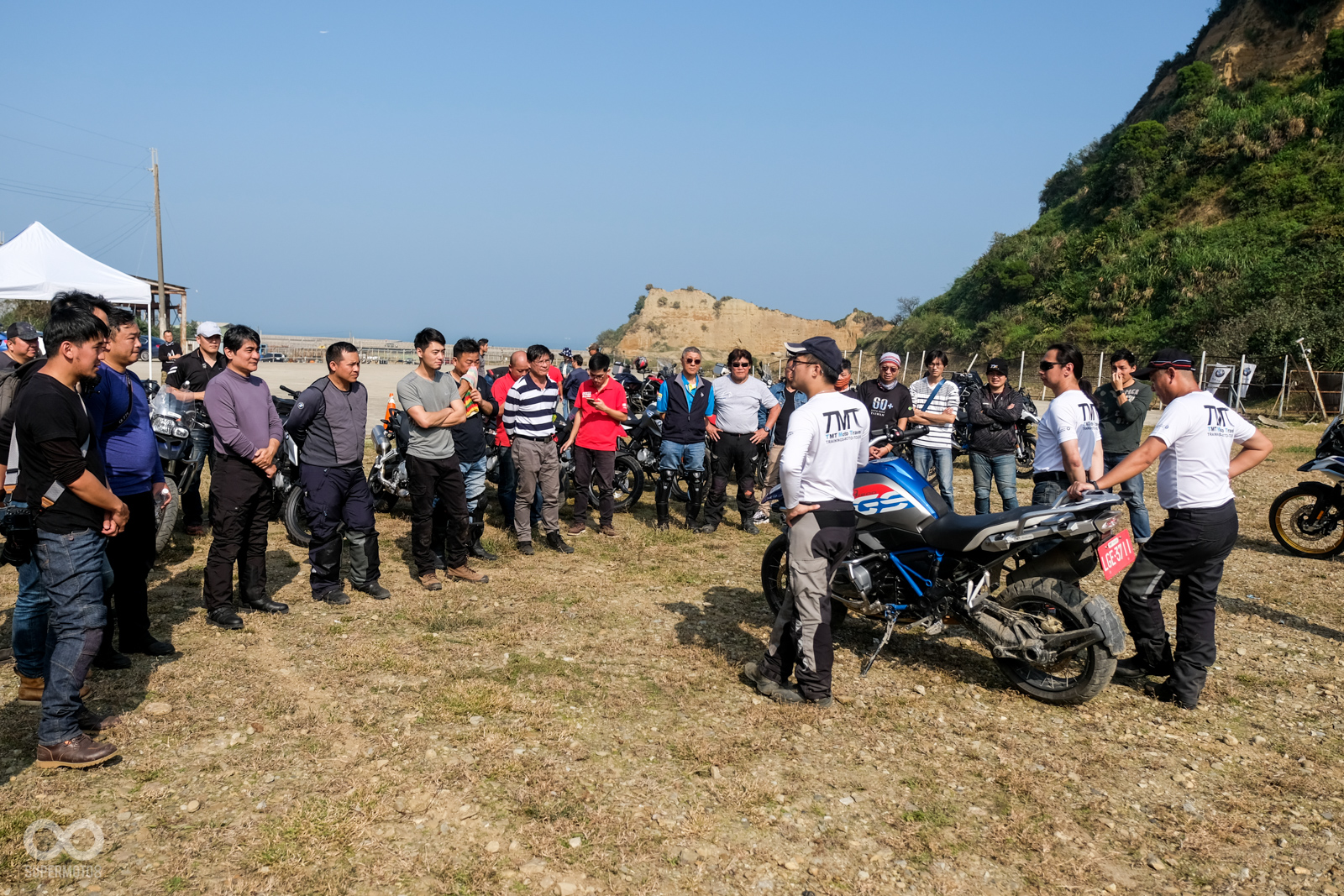 早上十點我們就來到了位在西濱台61快速道路旁的林口水牛坑,在這裡準備展開今天一整天的BMW F750/850 GS試乘體驗以及off-Road的訓練課程,這次的課程由BMW台灣的全球訓練教官Johnny帶領旗下的三位教官來替大家上課,在簡單的自我介紹、行程安排簡介之後,教官們也迅速地進入了今天的第一堂課。