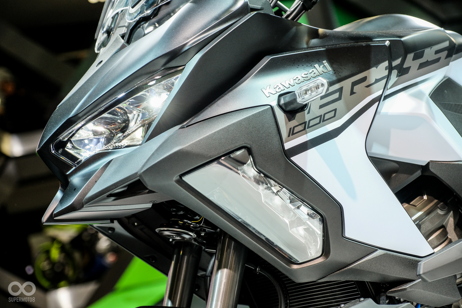 第一眼看見2019 KAWASAKI VERSYS 1000 SE,那銳利的車頭線條或許你會覺得似曾相似,KAWASAKI為這輛多功能車同樣換上了類似Ninja400、ZX-6R的車頭造型,搭配具有快速調整功能的免工具調整前風鏡營造出壯碩的車頭造型,下整流罩上有著類似Ninja H2 SX的轉向輔助燈,全車光源也都改為LED配置。