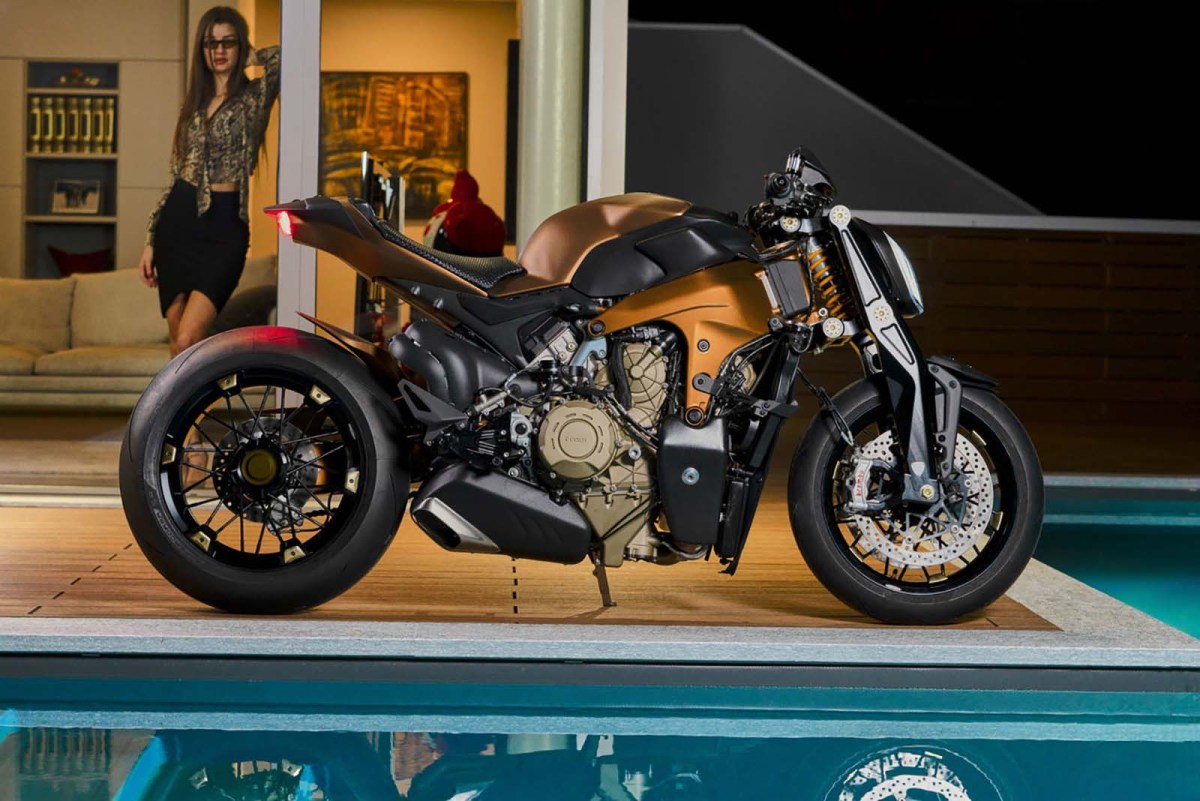 這間義大利公司自己打造V4 Penta,這台車是採用了DUCATI V4作為基礎,在褪下了華麗的外衣之後,換上XDiavel的大燈組,配上前叉裝飾蓋,營造出能夠一打五的兇狠架勢,同時也是傳承DUCATI純正街鬥的血統證明。