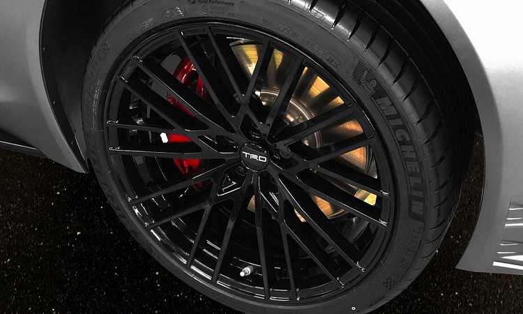 最後,GR Supra Performance Line概念車配備一套TRD的19寸鍛造鋁圈,採用網狀輪弧設計,有點復古搭配在新世代車型上帶來種特殊氛圍。值得注意的是懸吊、煞車並沒有在這次的亮相中出現,我相信這絕對不是最終版本,這意味著Supra TRD之後動力、底盤等,還有更多的升級空間。