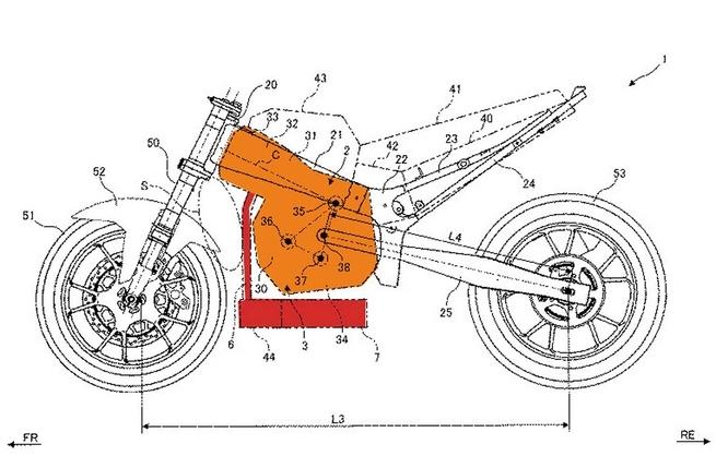 但這張專利圖也透露出了些許問題,例如以上的設計或許僅能實現在單缸車款上,因為汽缸頭比起傳統設計更靠近前叉,直列四缸引擎可能會面臨空間不足的問題。另外是關於檔車上頭那狹小的坐墊下置物空間可能也會消失,這項專利也附註,傳統油箱位置(43)將會被更改為空濾盒與進氣管道,油箱將與電池等配件移至坐墊下方。