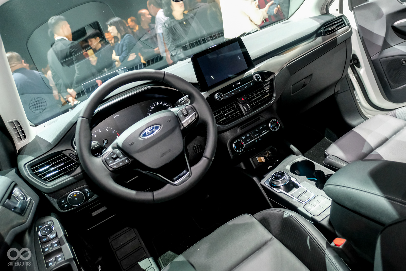 新一代FOCUS的車室空間設計,則是維持了一貫的FORD風格,內裝採用了FORD家族式設計,主打實用的內裝設計之外,更增添了幾分科技質感,像是分層儀表、8吋中控螢幕、HUD抬頭顯示器、無線手機充電座等,此外8吋中控螢幕還搭載有SYNC 3資訊娛樂系統,並支援Apple CarPlay以及Andriod Auto的功能;另外在這次改款也將排檔桿部分,改為旋鈕式設計,並且配有防呆裝置。