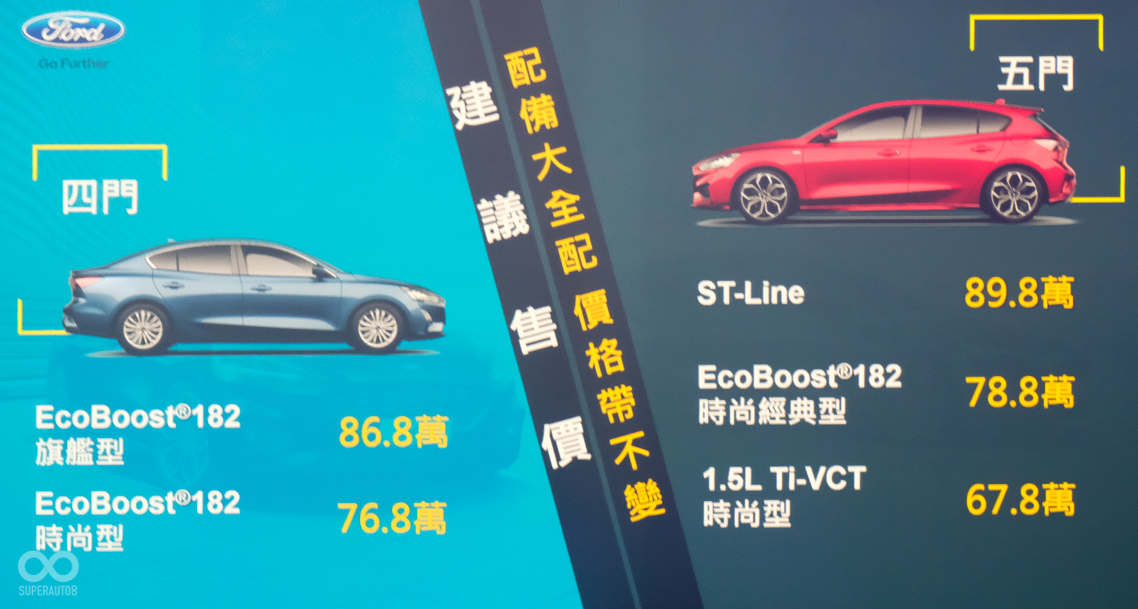 新一代的五門FOCUS同樣也讓人期待,這次福特六和發表了三款五門車型,售價分別是五門雅致型 67.9 萬、EcoBoost 182時尚型 78.9 萬、EcoBoost 182 ST-Line 89.8 萬。