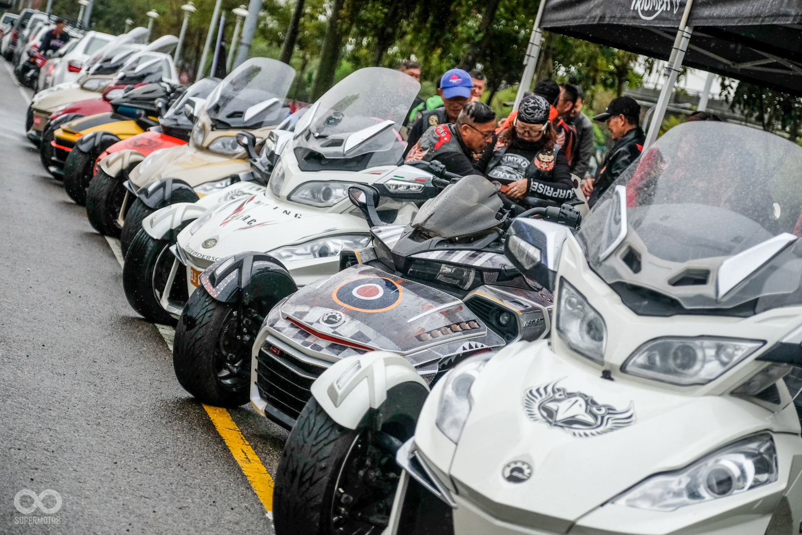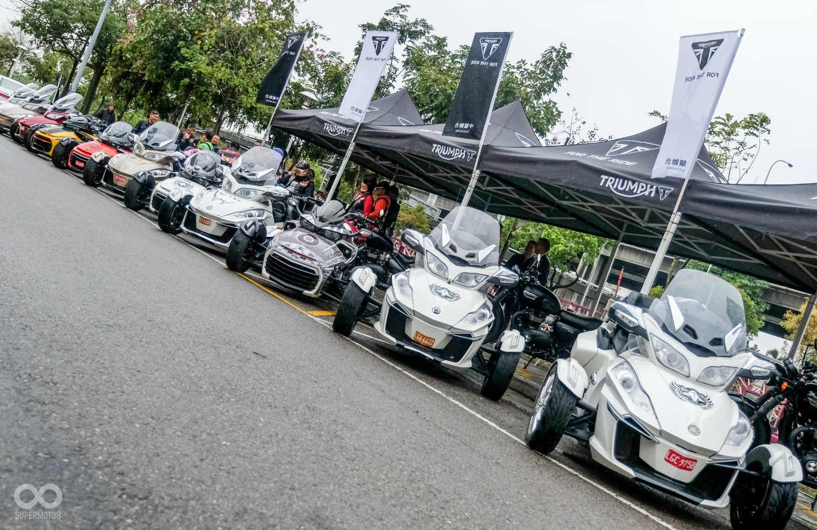 在今天的開幕活動,雖然氣象預報指出全台都將是多雨的氣候,但依舊有許多車友騎乘愛車到想共襄盛舉,其中陣容龐大的CAN-AM車隊更是從南部一路頂著濕冷的天氣來到台中TRIUMPH展間。