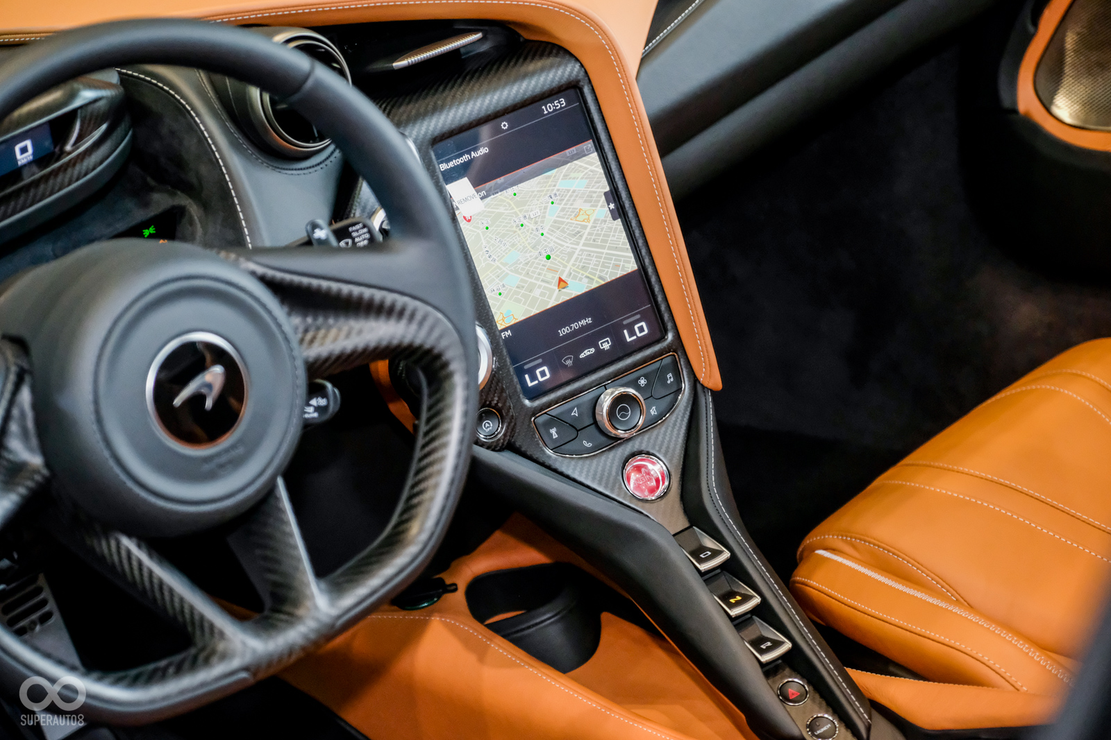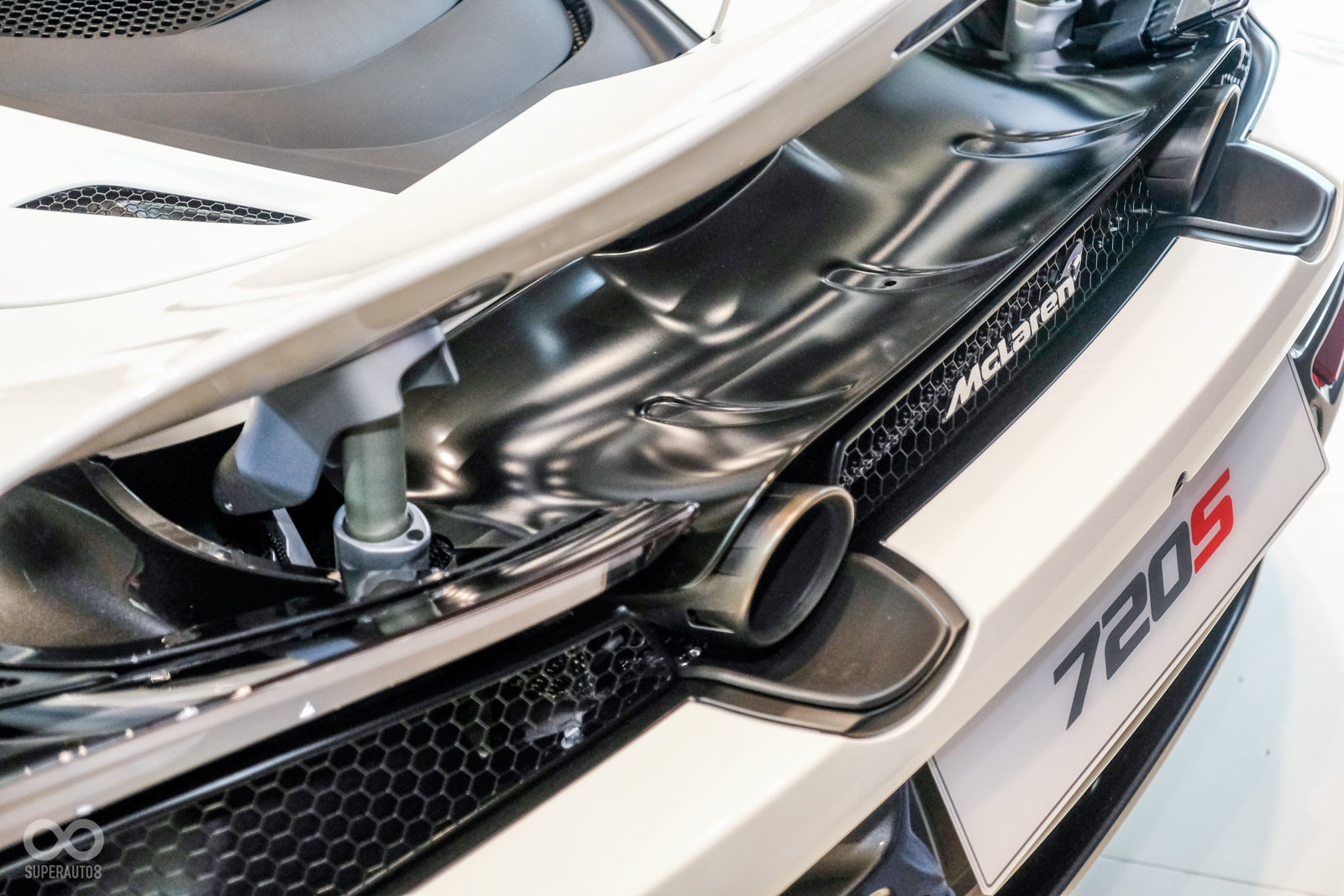 McLaren 720S Coupe擁有水滴型座艙,開闊的駕駛視角被完整轉移到720S Spider車款上,特別的透明飛拱式C柱可增進後方駕駛視角,相較於650S Spider提升12%視線範圍,車頂為玻璃硬頂,導入特別的電動變色功能,可以依照駕駛情況變化深色、淺色樣式。