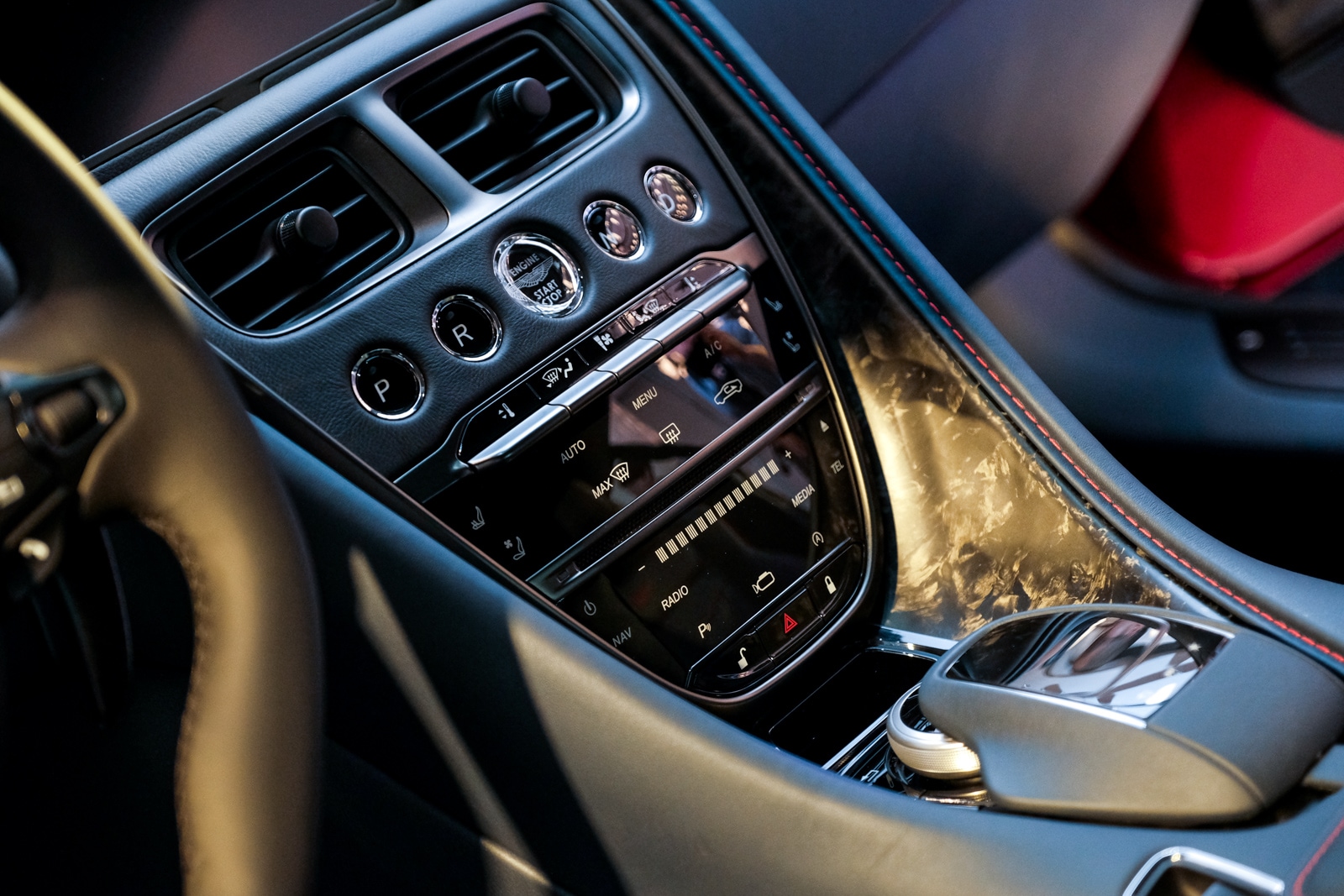 本次展出的車款選用特殊色的極限紅(Htper Red),內裝同樣採用紅色安全帶相互呼應,在車內的旋鈕、換檔撥片等細節,以深鉻色套件展現品味至上的美學。