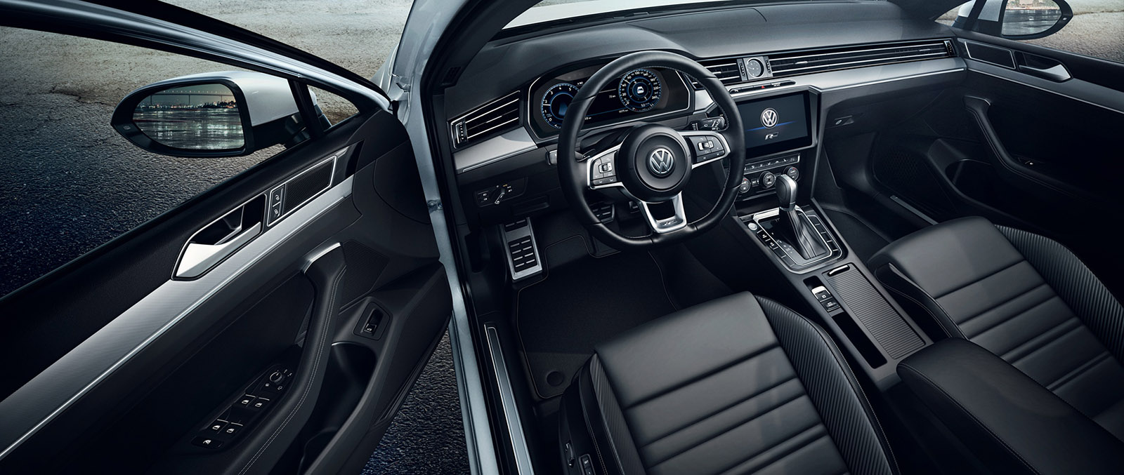 在外觀、內裝方面,標配R-Line專屬外觀套件,同時具備R-Line專屬內裝,包含R-Line運動化真皮多功能動力方向盤(具備換檔撥片)、R-Line專屬運動化湛黑色頂蓬、R-Line專屬金屬踏板和金屬門檻飾板,加上12.3吋AID全邏輯數位化儀表和HUD抬頭顯示器,打造跑格魅力和個性化風格。此外,榮耀升級卓越版加碼標配專屬Nappa Carbon碳纖維紋真皮ergoComfort舒適座椅,加上Dynaudio Confidence 環繞音響系統 (700W輸出、重低音)及全景式電動玻璃天窗,帶給車主兼具舒適和聽覺饗宴的頂級乘車感受。
