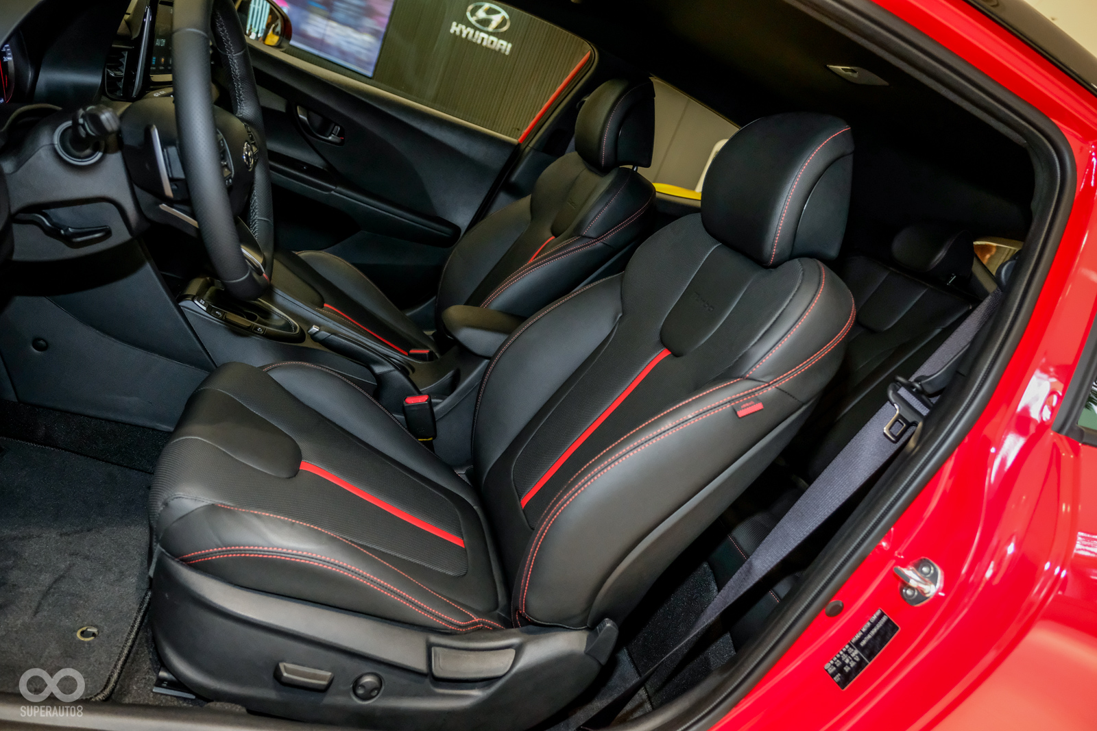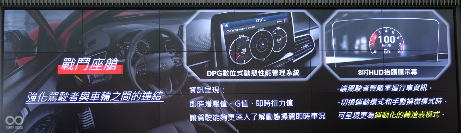 與外觀相互呼應的全新內裝,映入眼簾的是正、副駕駛座兩張賽車化坐椅。中控台除了懸浮式的8吋螢幕,且具有Apple Carplay與Android Auto功能,還可切換G值感應、扭力輸出、增壓值等資訊,在駕駛者前方也有8吋抬頭顯示器可顯示轉速等資訊,加上中控台的紅色飾條點綴、與換檔撥片等配備,座艙同樣具有絕佳的運動氣息。