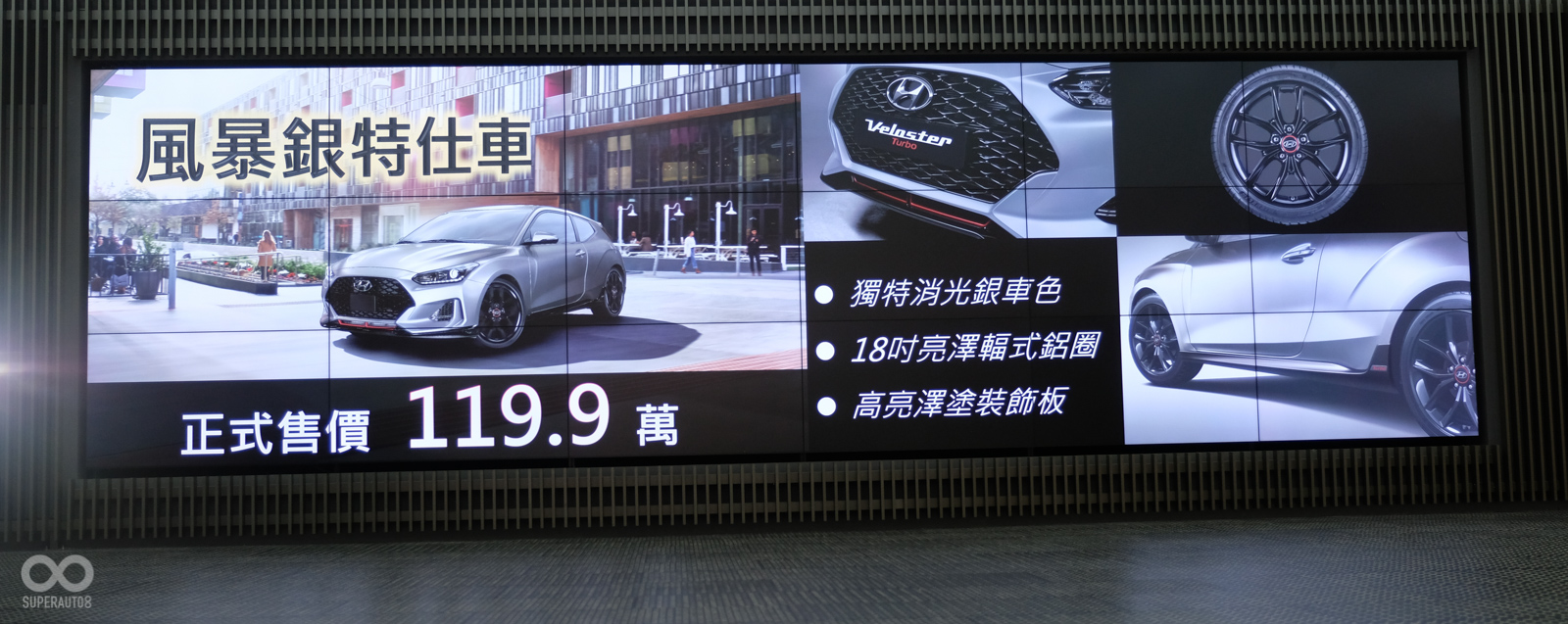 除了標準版本的四種車色以外,在今天的上市活動中南陽實業更帶來了VELOSTER風暴銀特仕款,外觀施以風暴銀消光漆面處理,水箱護罩、前、後保桿下緣、空力側裙以及18吋五幅鋁圈,一併施以高亮烤漆處理,呈現出更為運動的車輛氛圍。