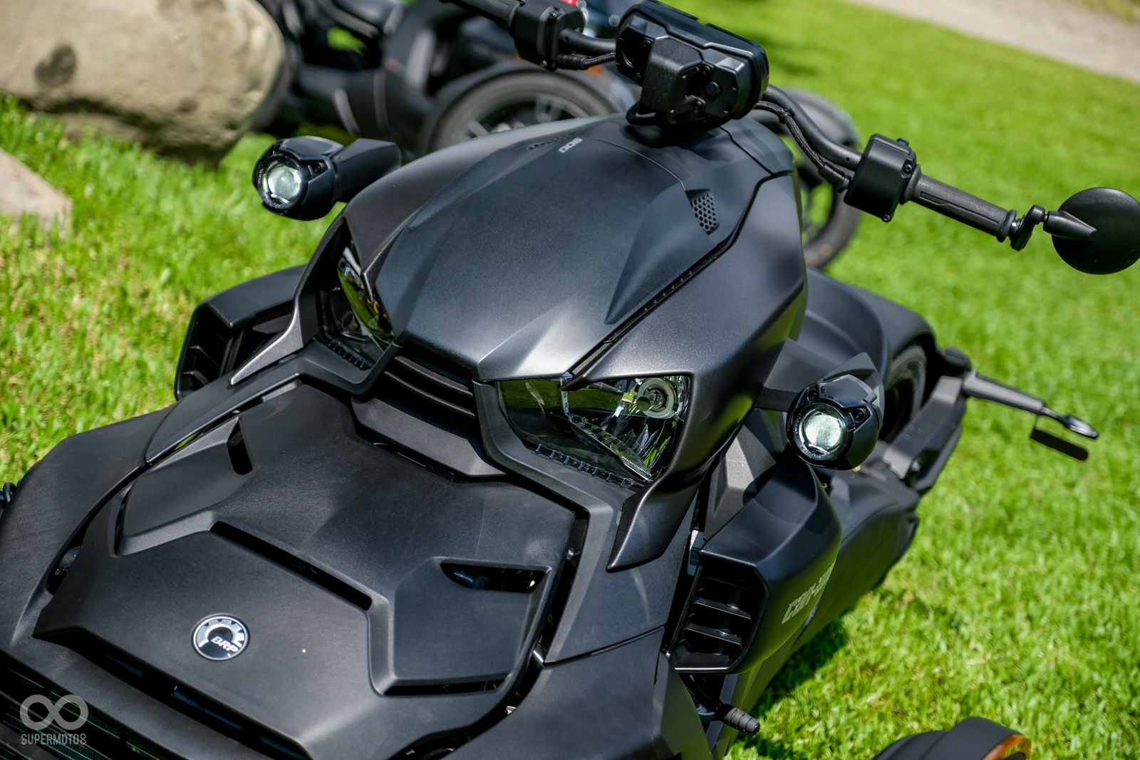 Ryker這次採用全新的雙缸/三缸ROTAX引擎、CVT變速系統、後搖臂內藏式軸傳動,以降低排氣量來壓低成本,加上軸傳動的保養優勢配上簡單化的操作體驗,會讓更多的年輕人願意嘗試這款獨特的三輪重機,該車款的把手、腳踏階為可調整款式,免工具即可快速找到適合的位置。