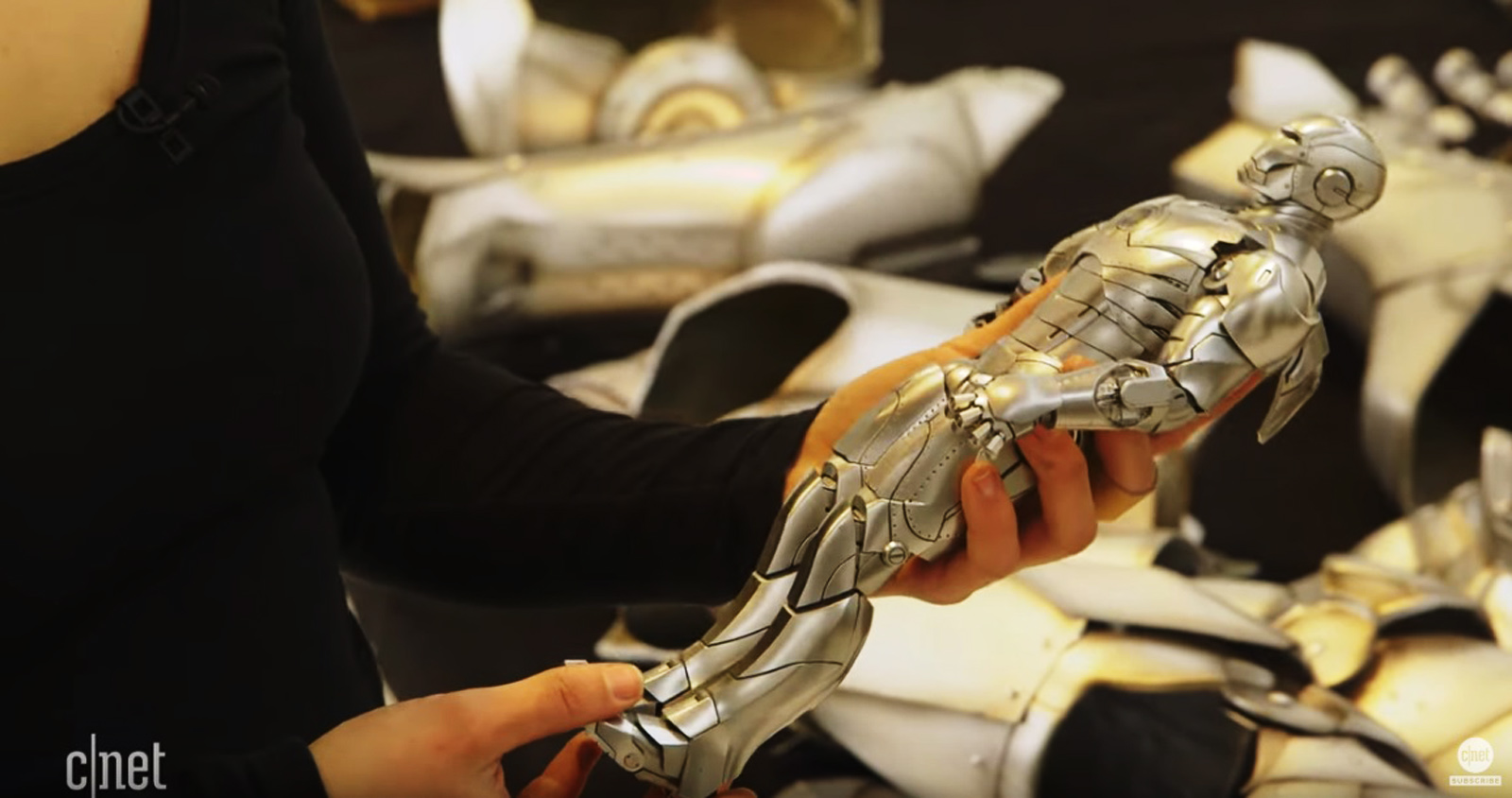 在Colorado學院的幫助下,使用了特殊的3D列印技術對這項高密度的鈦金屬進行打印,整套鋼鐵裝有著多達280多個的獨立部件,盡管鋼鐵裝的材質並非100%的純鈦,但至少在外觀上盡可能地還原了電影中的造型。