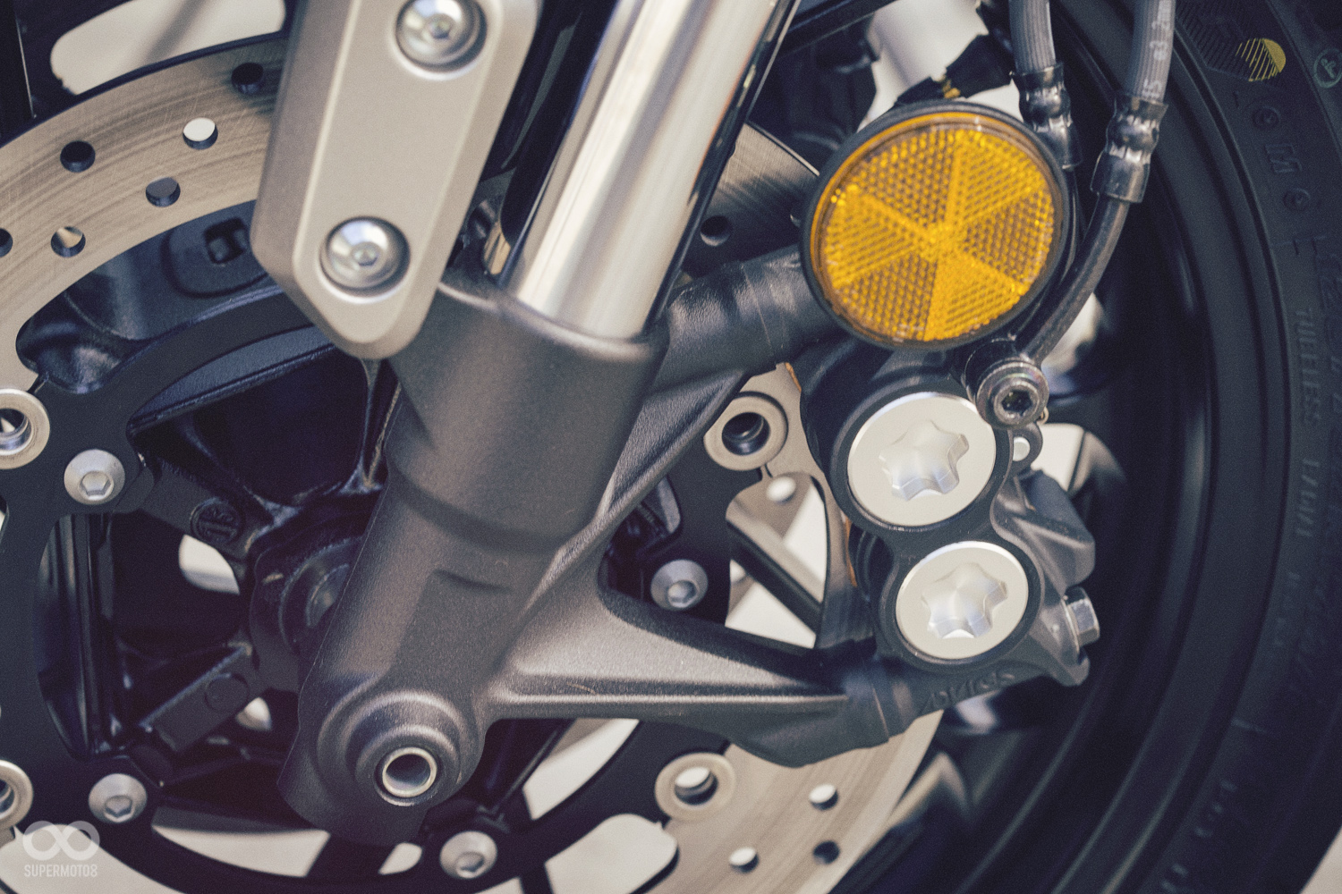 雖然在外型上XSR900擁有全新的帥哥樣貌,但其內裝載著運動健將MT-09的骨肉。相同的三缸847cc引擎原廠聲稱擁有115匹的驚人馬力,41mm倒立前叉搭配輻射雙子星卡鉗、三種動力模式選擇、循跡控制系統、ABS系統、滑動離合器,這樣的規格一舉跨越復古的界線,說它是復古車我覺得它更本是輛整形後的運動街車。