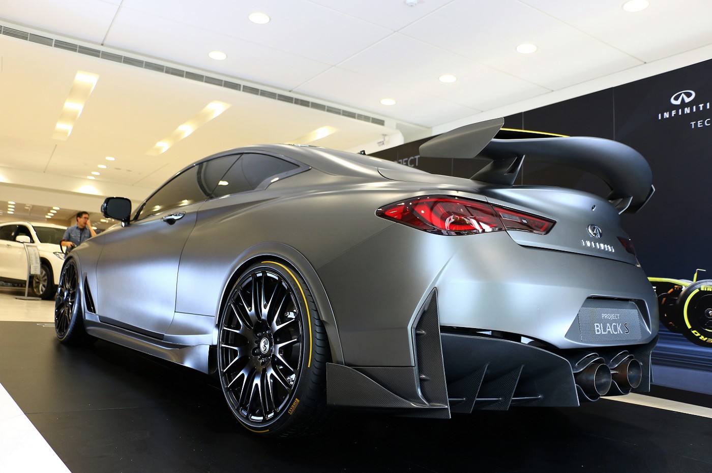 動力部分Project Black S搭載一顆Infiniti VR30雙渦輪增壓3.0升V6引擎,結合獨特的動能回收系統,綜效輸出最大馬力達到563匹,最大扭力則有475牛頓米,從靜止加速到百公里/小時只需要4秒,可以號稱是目前市售車中最快的Infiniti車款。