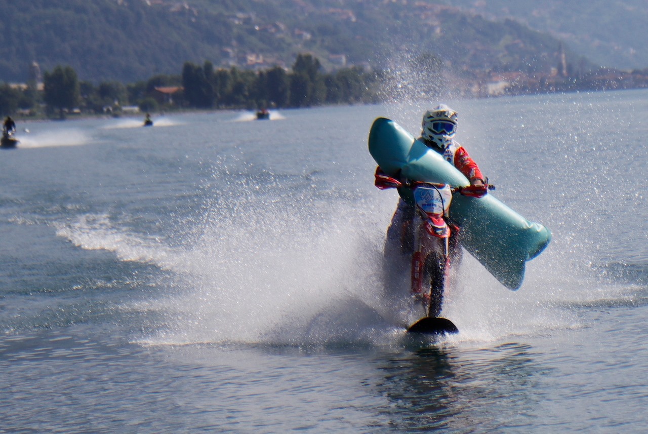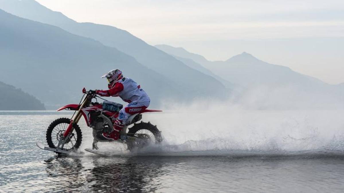 2017年7月,來自義大利的Luca Colombo騎著特殊改裝的越野車,創下橫跨義大利科莫湖5.5公里的紀錄,今年Luca Colombo準備再次挑戰義大利北部的這座美麗湖泊,這次他瞄準的是由澳洲車手Robbie Maddison寫下93.3公里的水上最速摩托車紀錄,Luca Colombo在上週六騎著一台經過特殊改裝的HONDA CRF450R成功刷破,成為水上最速的摩托車騎士。