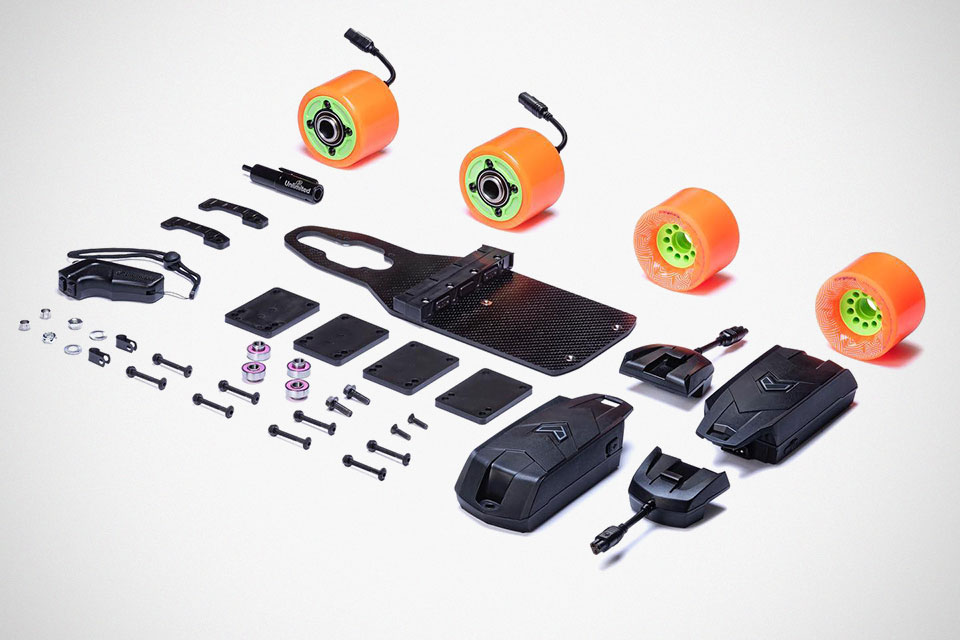 近日,Loadedboards公司與驅動工程公司Unlimited Engineering聯合推出了一套電動滑板套件,能讓普通滑板搖身一變成為電動滑板,還提供了三種款式供消費者選擇,分別為Solo、Cruiser和Race。