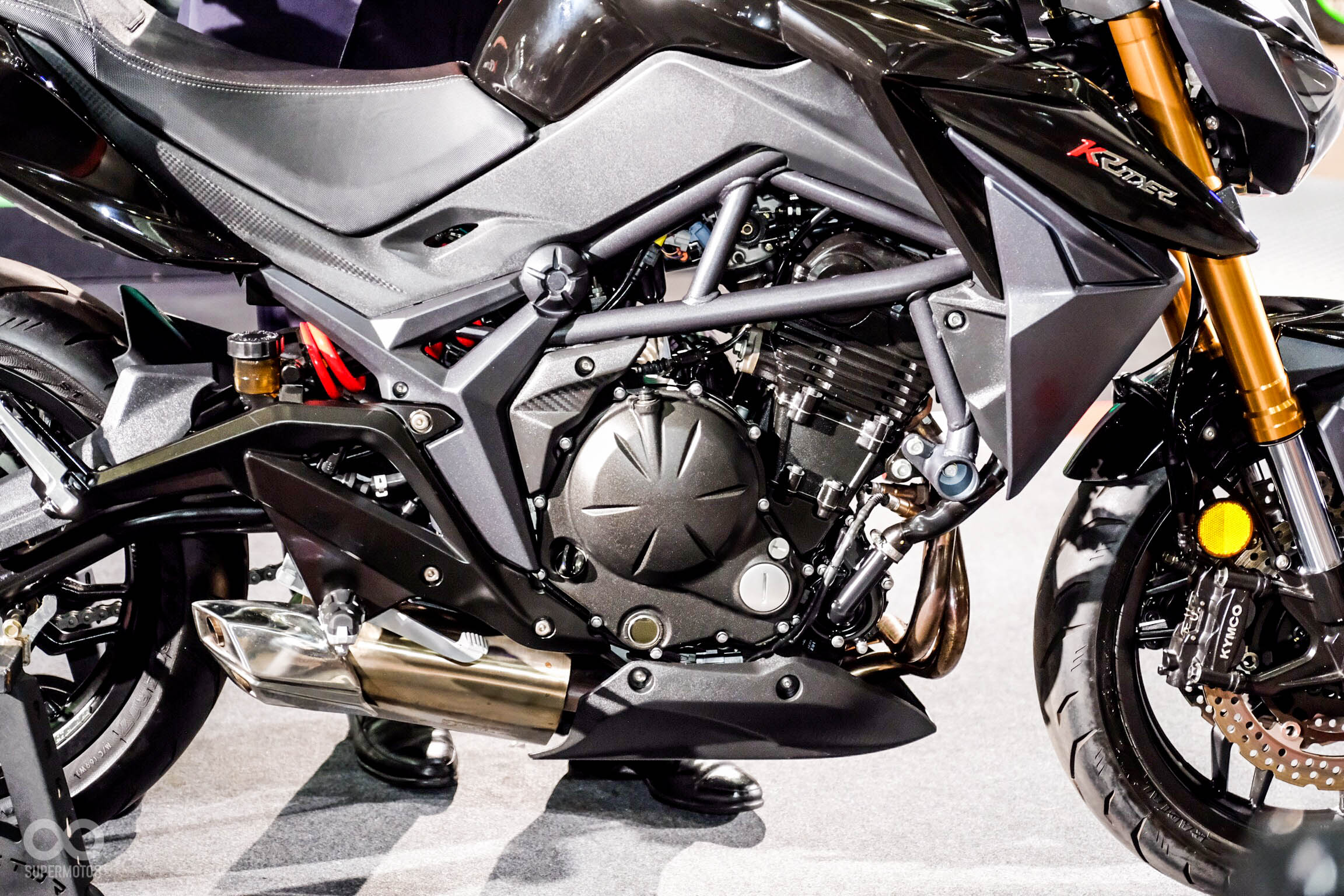 動力部分,K-Rider使用一具399c.c.並列雙缸引擎,最大馬力44PS@9,500rpm,最大扭力37N-m@7,500rpm,性能方面與KAWASAKI的車款規格相同,引擎外觀與細節部分,不難看出KRIDER 400與KAWASAKI深厚的關係淵源。