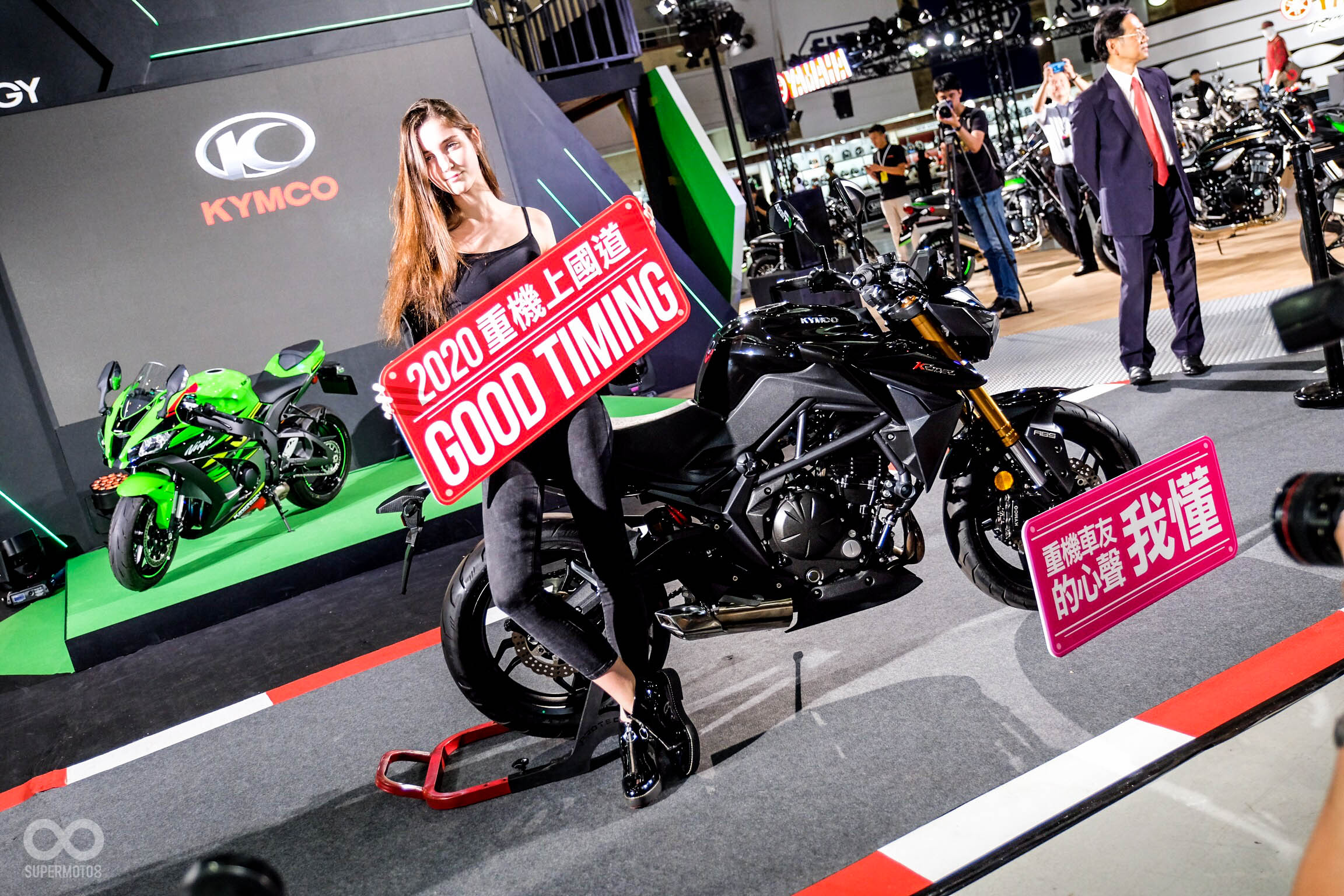 而在KAWASAKI攤位的一角,週四媒體日突如其來的發表會倒是殺得令眾家媒體措手不及,KYMCO執行長 柯俊斌親自到場為KYMCO KRIDER揭幕,雖然並未公布售價以及詳細規格數據,但也預告2019年底將會正式發表,2020年開始交車。黃牌檔車的車型定位,將會成為熱門級距中的新選擇。