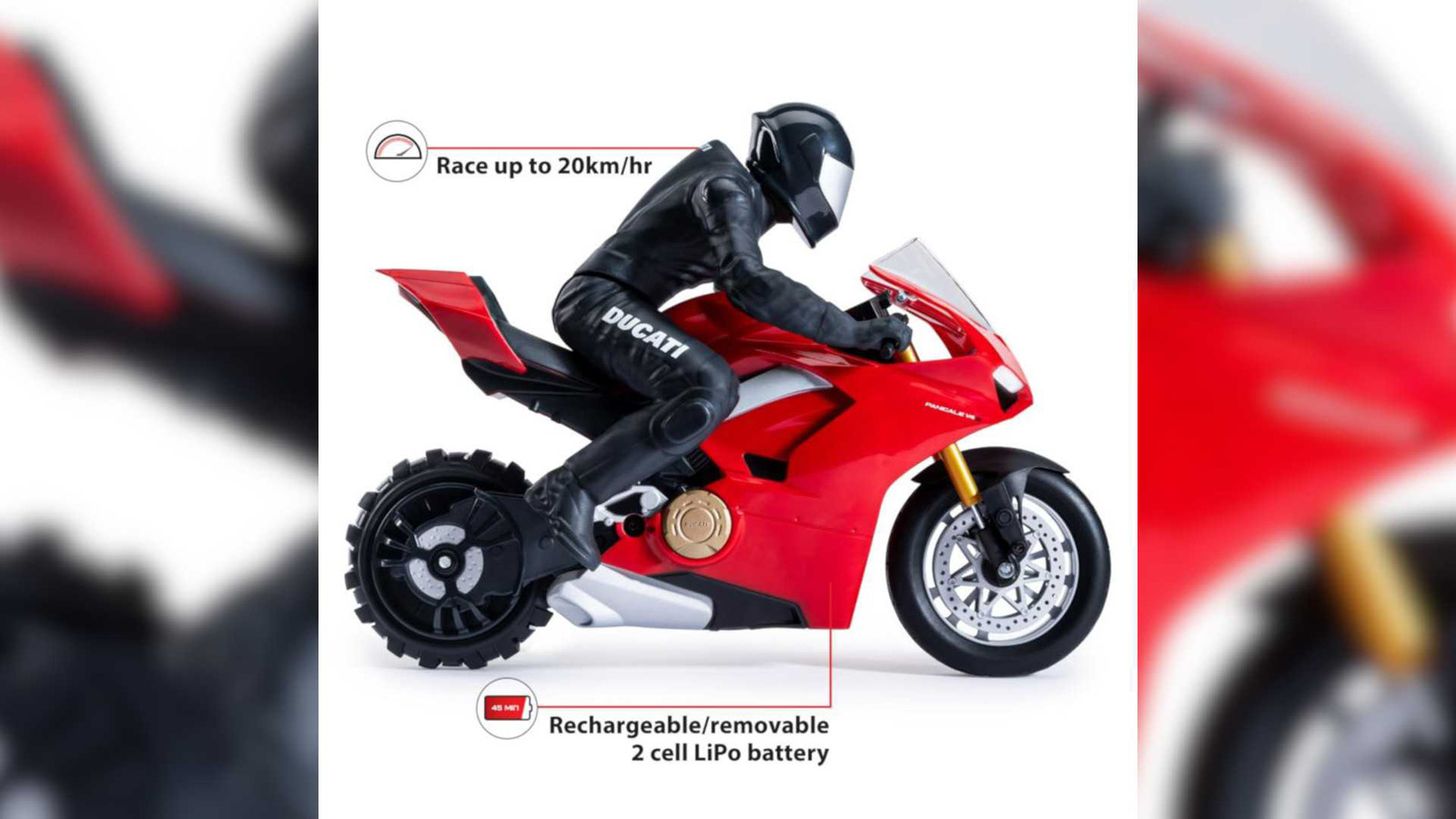 Spinmaster Upriser Ducati Panigale V4 S RC的最高時速可達到20公里,配備全車LED燈系以及駐車架,駕駛人偶也能夠自由拆卸,目前這項玩具已經可以在Amazon的網站上進行購買,價錢為150美金(大約4700元新台幣)。